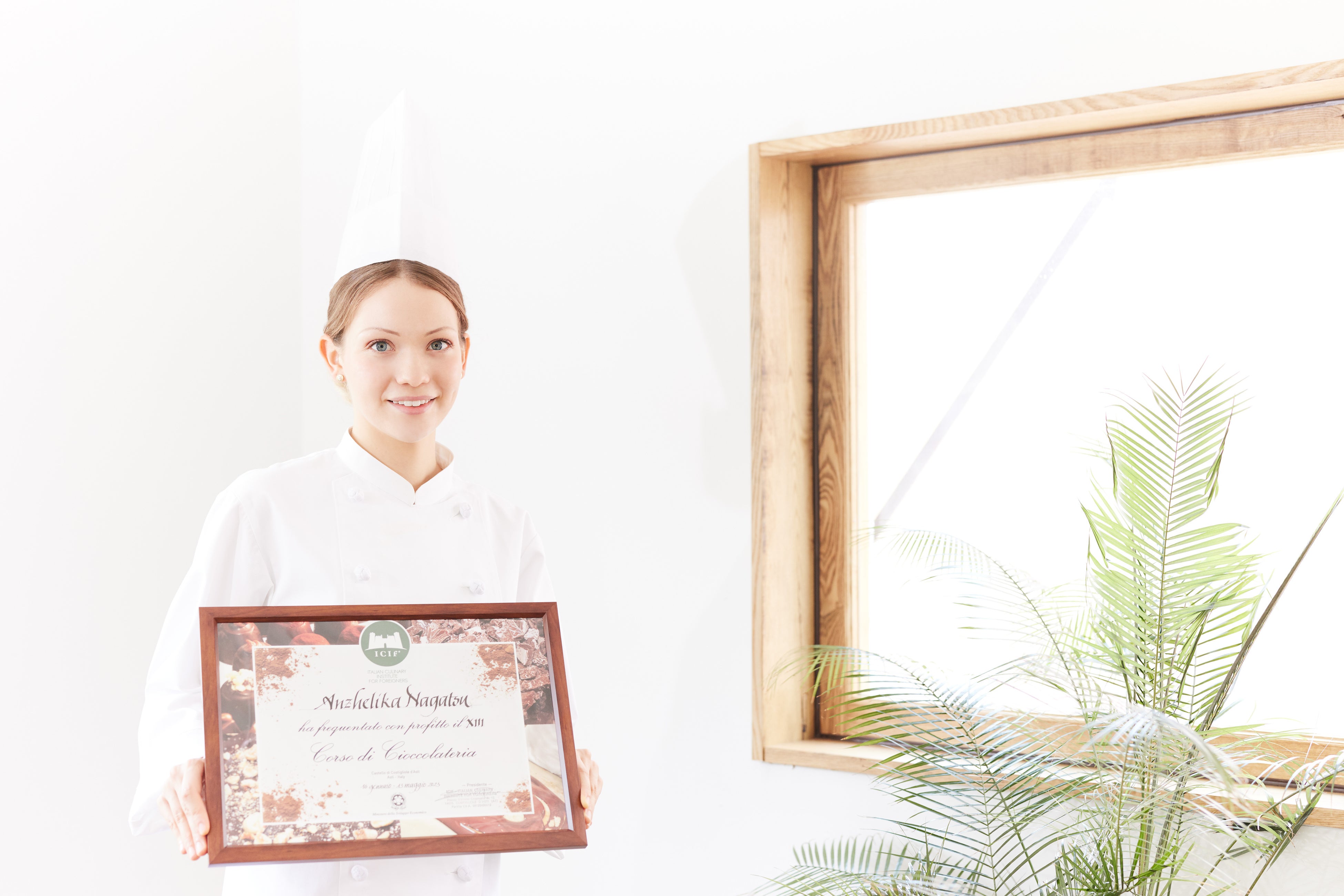 Angelika Nagatsu(アンジェリカ ナガツ)はロシア出身で、現在は日本在住のショコラティエ(チョコレート職人)です。彼女はチョコレートへの情熱を追求し、イタリアのICIF (Italian Culinary Institute for Foreiners)でCHOCOLATARIE COURSEを学びました。そこで、高度なチョコレート製造技術や独自のレシピ、芸術的なデザインを活かす手法等を習得致しました。