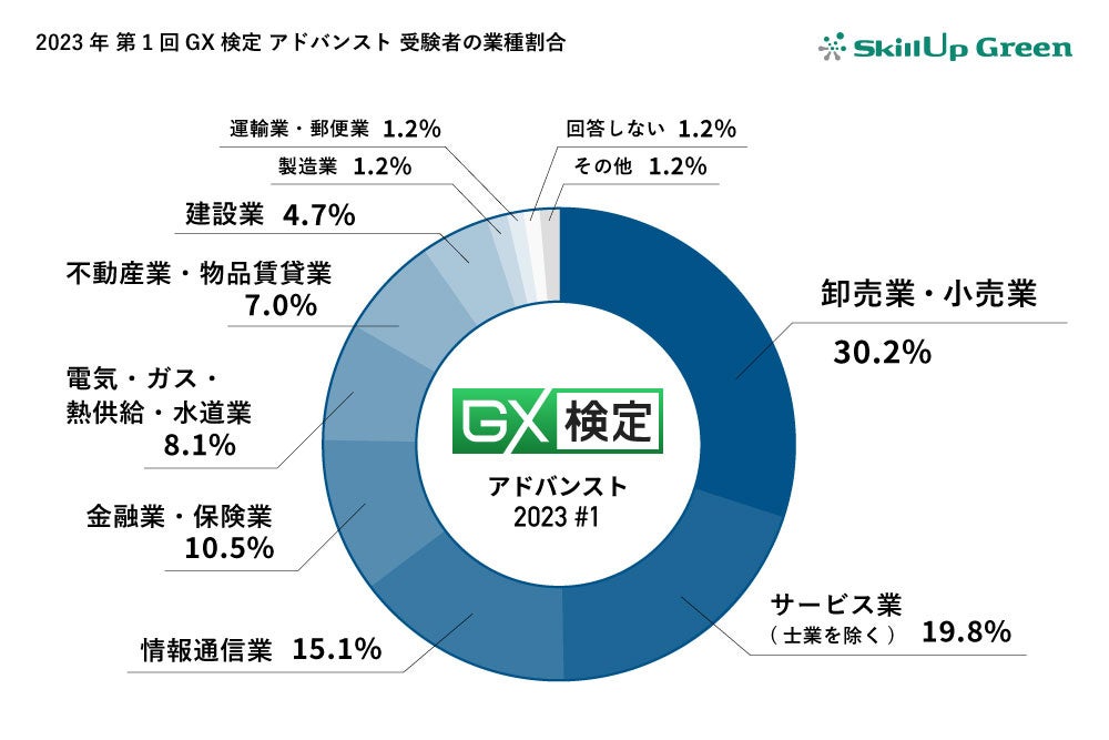 受験者に占める業種の割合は卸売業・小売業が最多でサービス業が続く