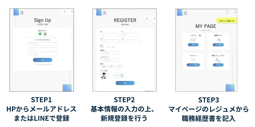 STEP1 HPからユーザー登録(仕事塾サービスサイト:https://app.shigotojyuku.com/sign_up )