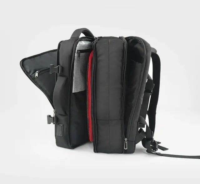 ジッパーを開き、両サイドの調整ストラップの長さを調整するだけの簡単操作で、バッグの容量を23Lから40Lに拡張することができます。