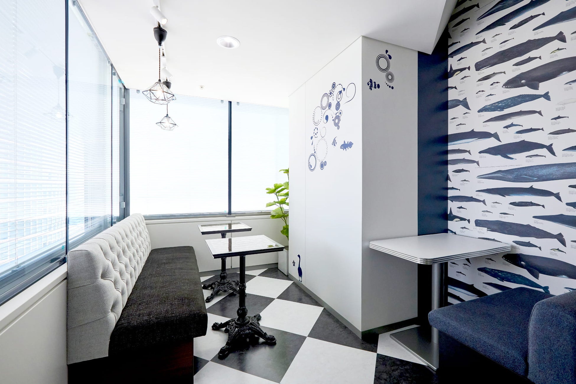 運河や航海にちなんだモチーフを展開し、蔦が這う海外のアパートメント、星を目印に出航する冒険家、日本近海で見られるクジラやイルカをアクセントクロスで演出、かつての流通倉庫群と高層ビル、水上建築が共存し、異国情緒あふれる現代の「水の都・東京」を表現しました。