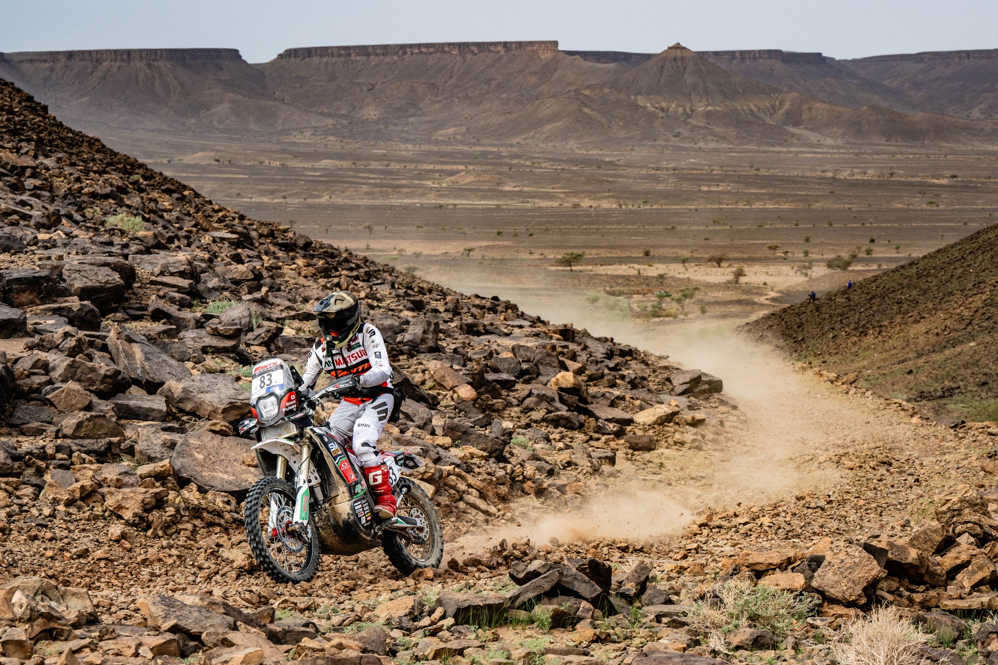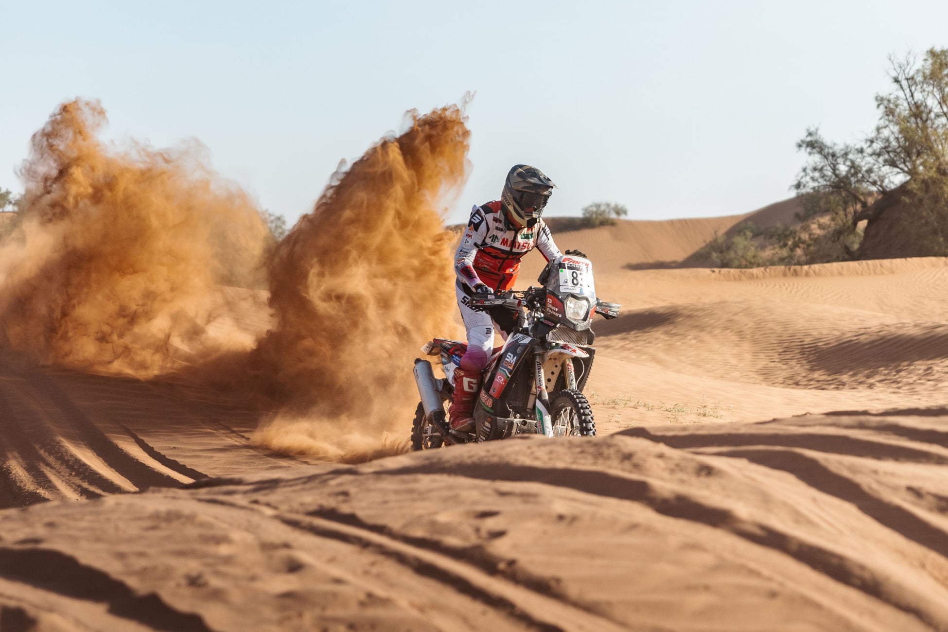 デューンだけでなく、ガレ場やサバンナも難易度が高かったとのこと。「雨の影響で1日目のルートが極端に厳しくなってしまいました。バイクもラリーも初めてで慣れておらず、1日目は疲れも酷く感じました。だんだん慣れてきて、メルズーガを走る3日目にはダカールを想定したスピードにトライしたり、その上でどのくらい体力を温存できるのか、など身体をコントロールしながら走ることに専念できました。今回の目標はダカール・ラリーの参戦権を得るために完走することがまずひとつ、そしてダカール・ラリーに向けて経験やマネジメントスキルを積むことだったので、どちらも満足です」と藤原のコメント。