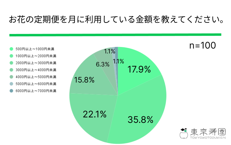 「お花の定期便」を月に利用している金額は1000円以上〜2000円未満が35.8%