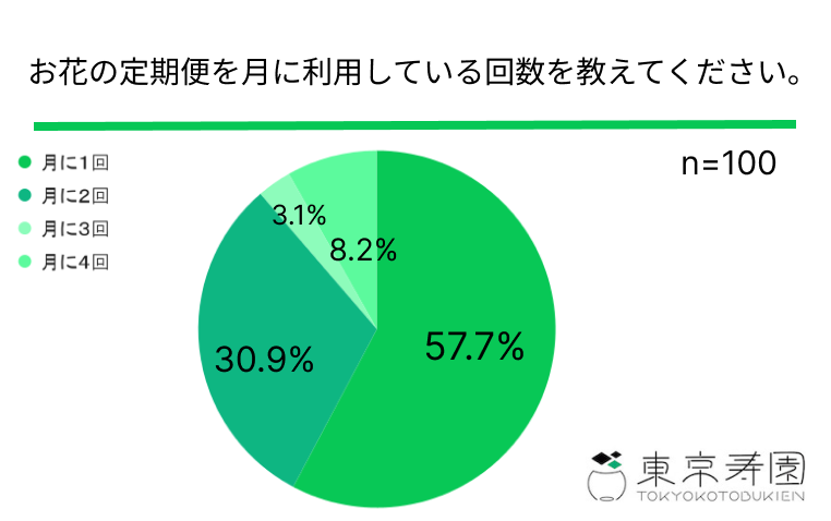 「お花の定期便」を月に利用している頻度は月に1回が57.7%