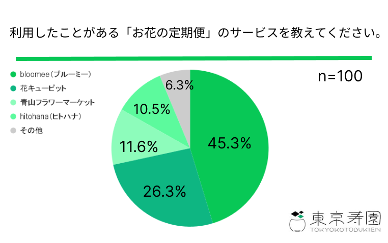今回は、実際に「お花の定期便」を利用しているユーザーに使用頻度や利用しているサービス名をアンケートしてみました。