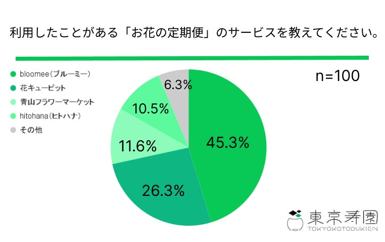 観葉植物やお花メディア「東京寿園(https://tokyo-kotobukien.jp/blogs/magazine/)」を運営する株式会社東京寿園(東京都渋谷区、代表取締役 來住樹生)は、お花を購入したことがある方を対象に、お花の定期便に関してアンケート調査を行いました。
