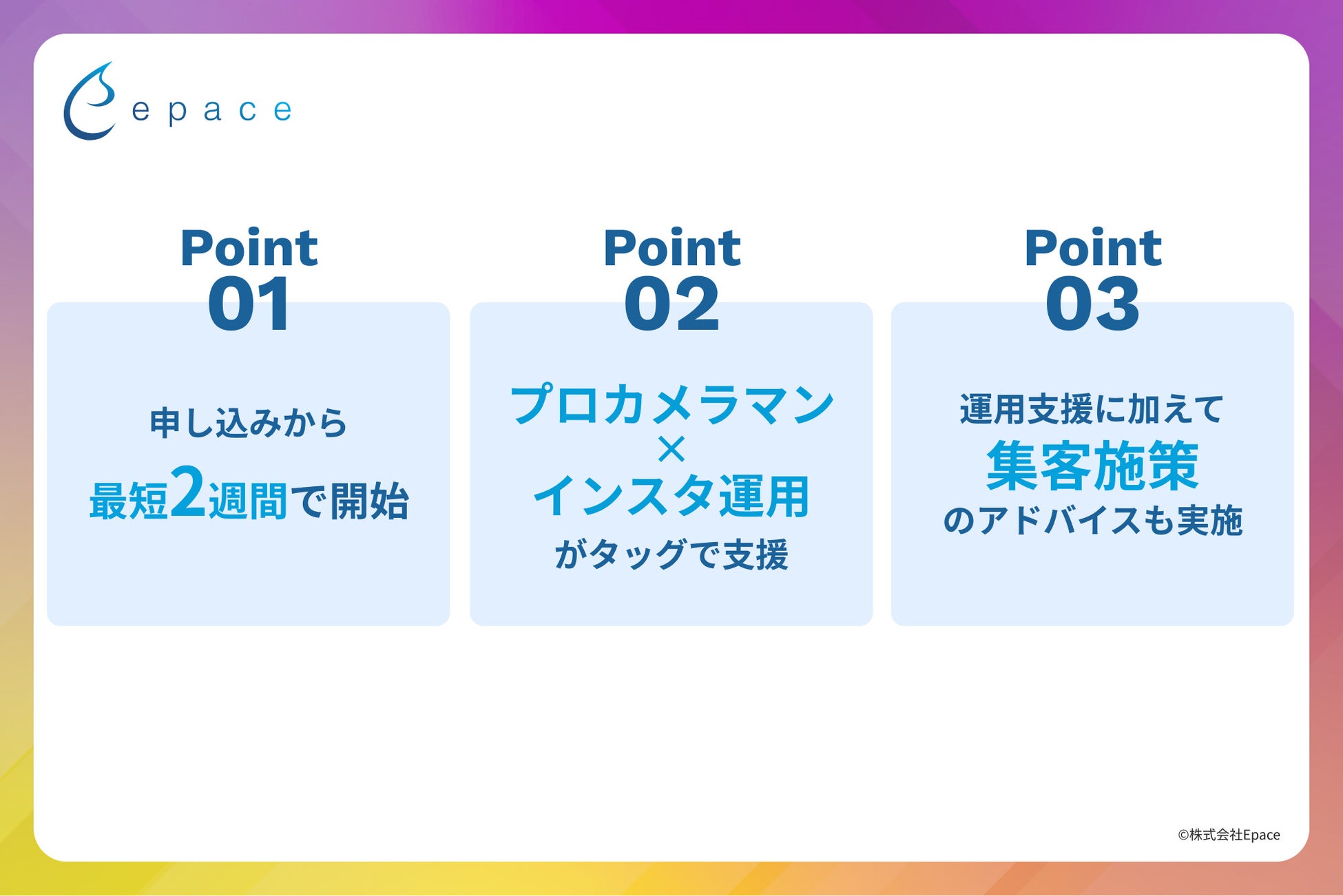 ②プロカメラマンによるハイクオリティな写真・動画を使って、プロのInstagram運用者がアカウント運営をサポートする