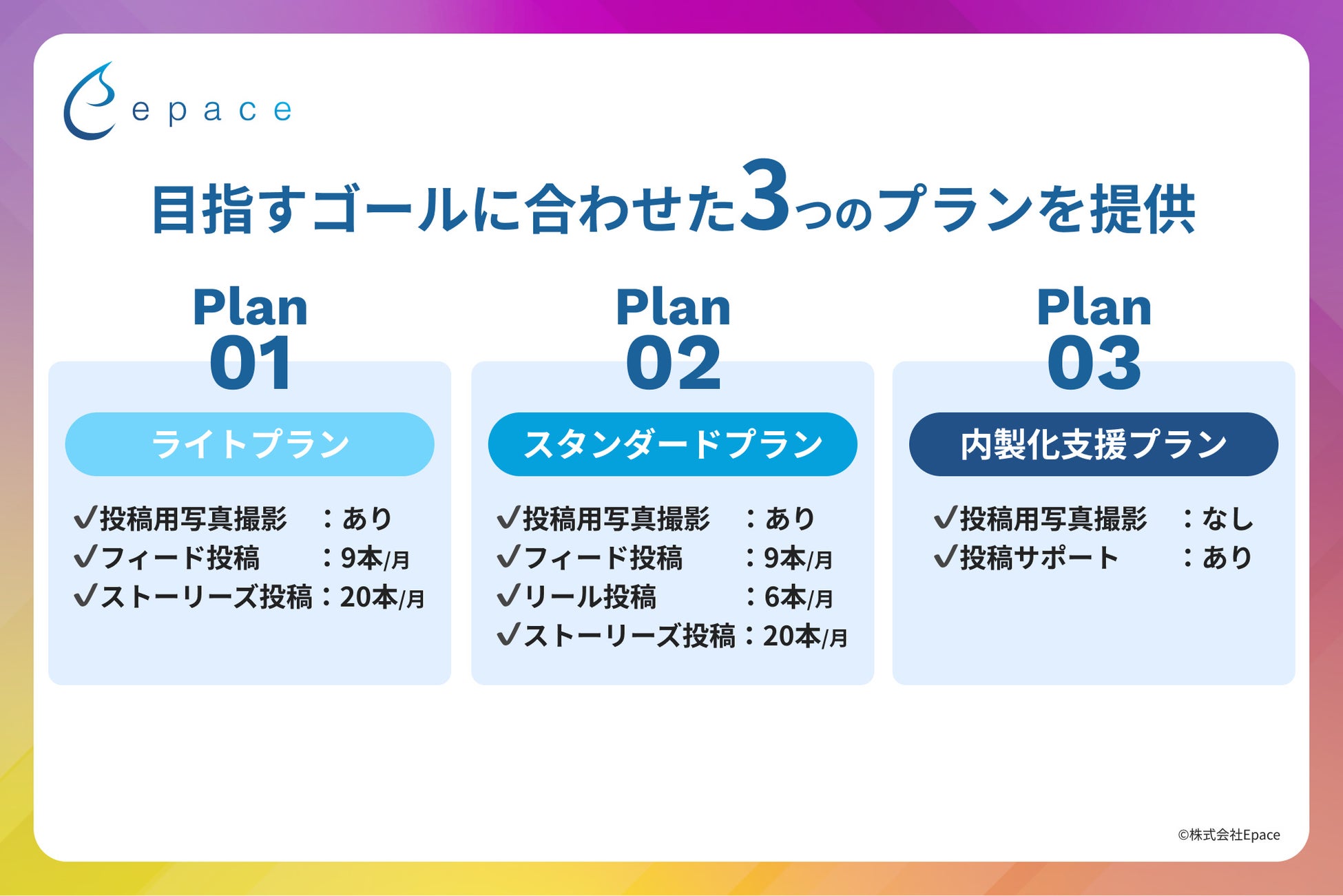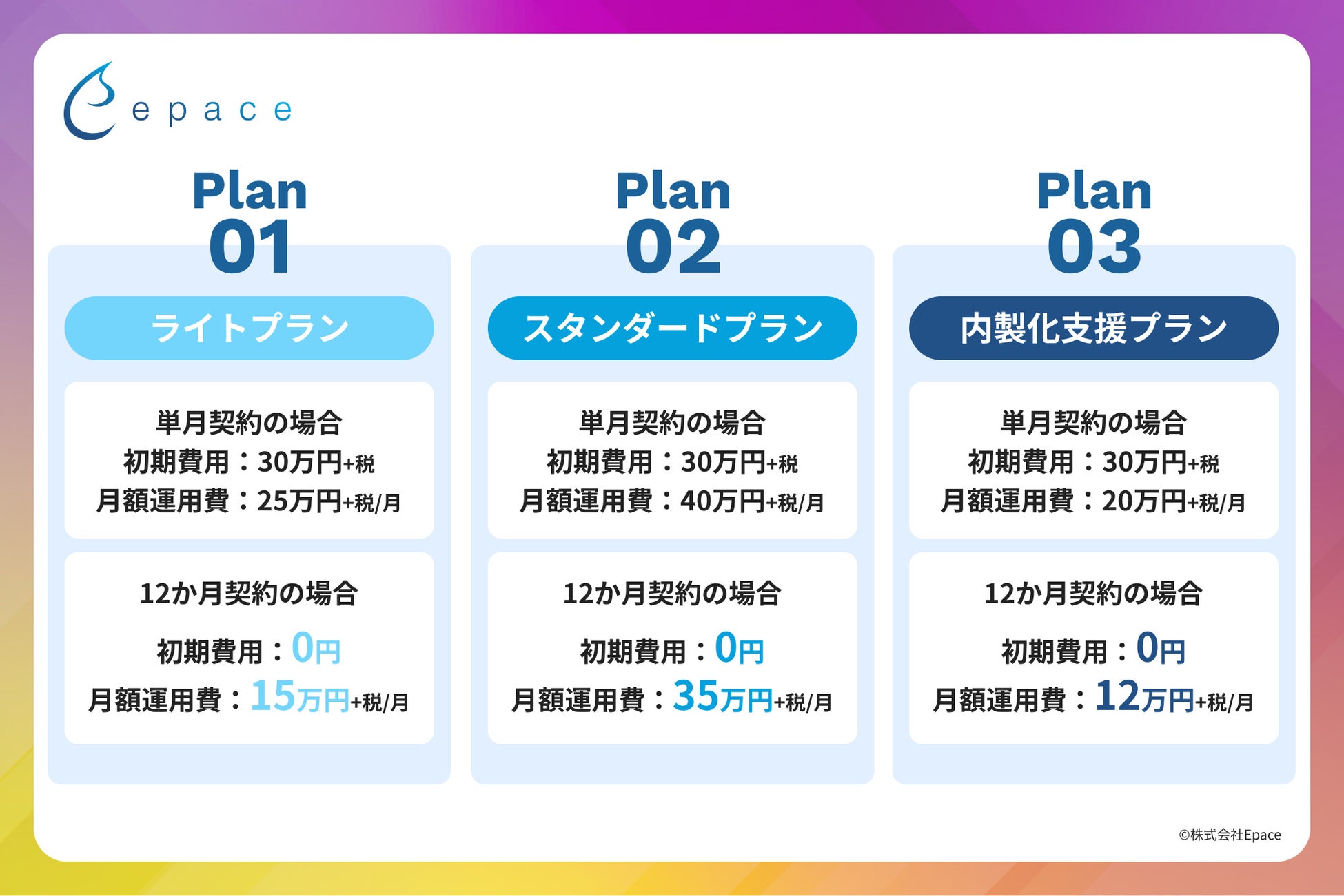 また、3つのプランをご用意しているため、事業者様の目的に合わせた最適なプランをご提案させていただきます。