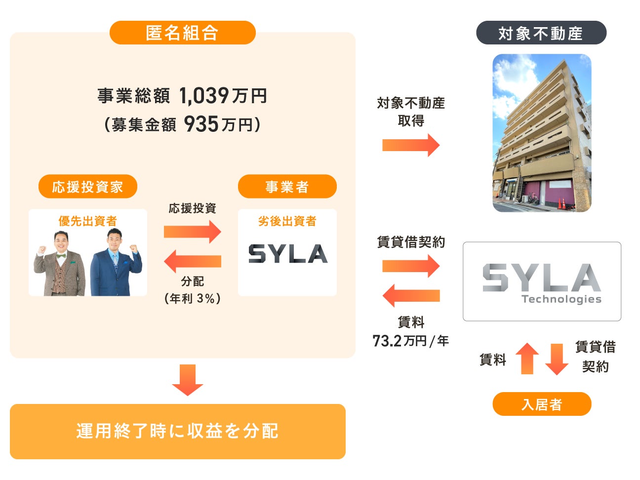 “応援を新しいカタチで”をコンセプトに、一口1万円から、社会貢献や地域創生、誰かの夢や挑戦に繋がる不動産に応援投資ができる“応援型不動産クラウドファンディングプラットフォーム”です。