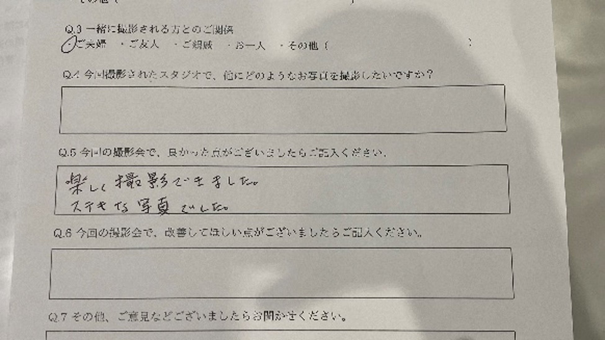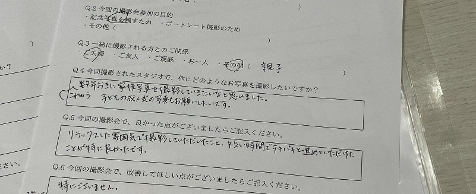 イベントの事後アンケートでは、「初めて家族で写真を撮りました。雰囲気が良かったです。」、「リラックスした雰囲気で撮影していただいたこと、短い時間でテキパキと勧めていただけたことが特に良かったです。」、「楽しく撮影できました。素敵な写真でした。」、「子どもの成人式の写真もお願いしたいです。」など、満足度の高いコメントをいただきました。