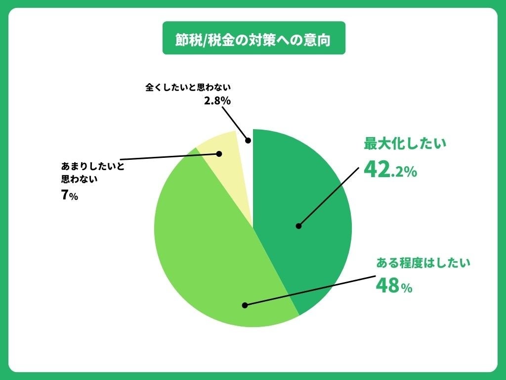 節税への意向についても尋ねました。最大限節税したい人は42.2%、ある程度節税したい人は48%となりました。過度な節税には慎重な姿勢を取りながらも、合法的で適切な範囲での節税を望む人は多いことが読み取れます。
