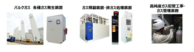 酸素、窒素をはじめとした産業ガスの導入だけでなく、ケミカル材料を半導体製造装置へ安全かつ安定的に供給するシステムや、精製・処理装置など、幅広いラインアップを取り揃えています。加速度的に成長するエレクトロニクス分野に向けて、最先端のニーズにお応えします。