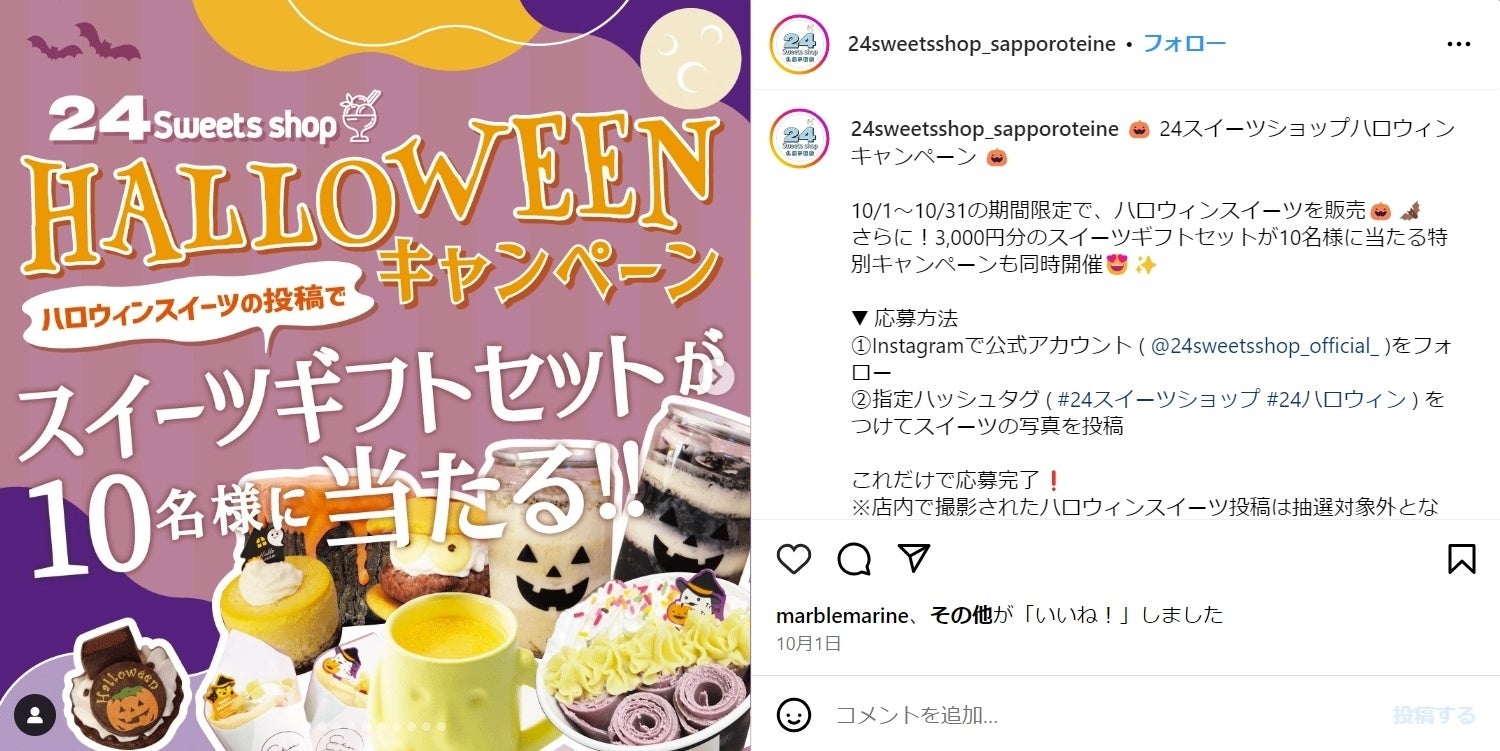「24スイーツショップ札幌手稲店」の公式Instagramでは、