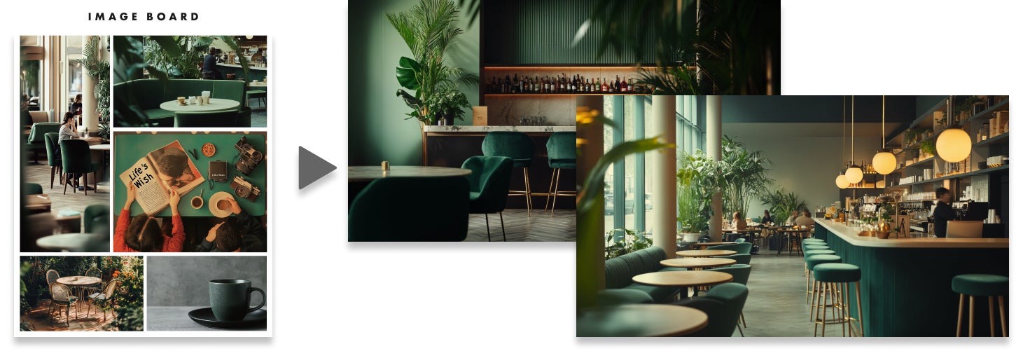 不動産企画の初期段階では「コンセプトやビジョンはできたが、空間イメージを具体化できない」という課題が見受けられます。空間イメージを伝える手段としてムードボードが利用されますが、提案の説得力を十分に引き出せないケースが少なくありません。そこで当社は、建築家のもつ「空間を創造する力」で、企画の意図を的確に汲み取った空間を計画し、写真のようなリアルな表現を可能にするAI技術で、視覚的に美しいビジュアルを制作するサービスを提供することにしました。企画の初期段階で説得力の向上をサポートすることで、素敵な建築や空間が実現する機会を増やすことを目指します。
