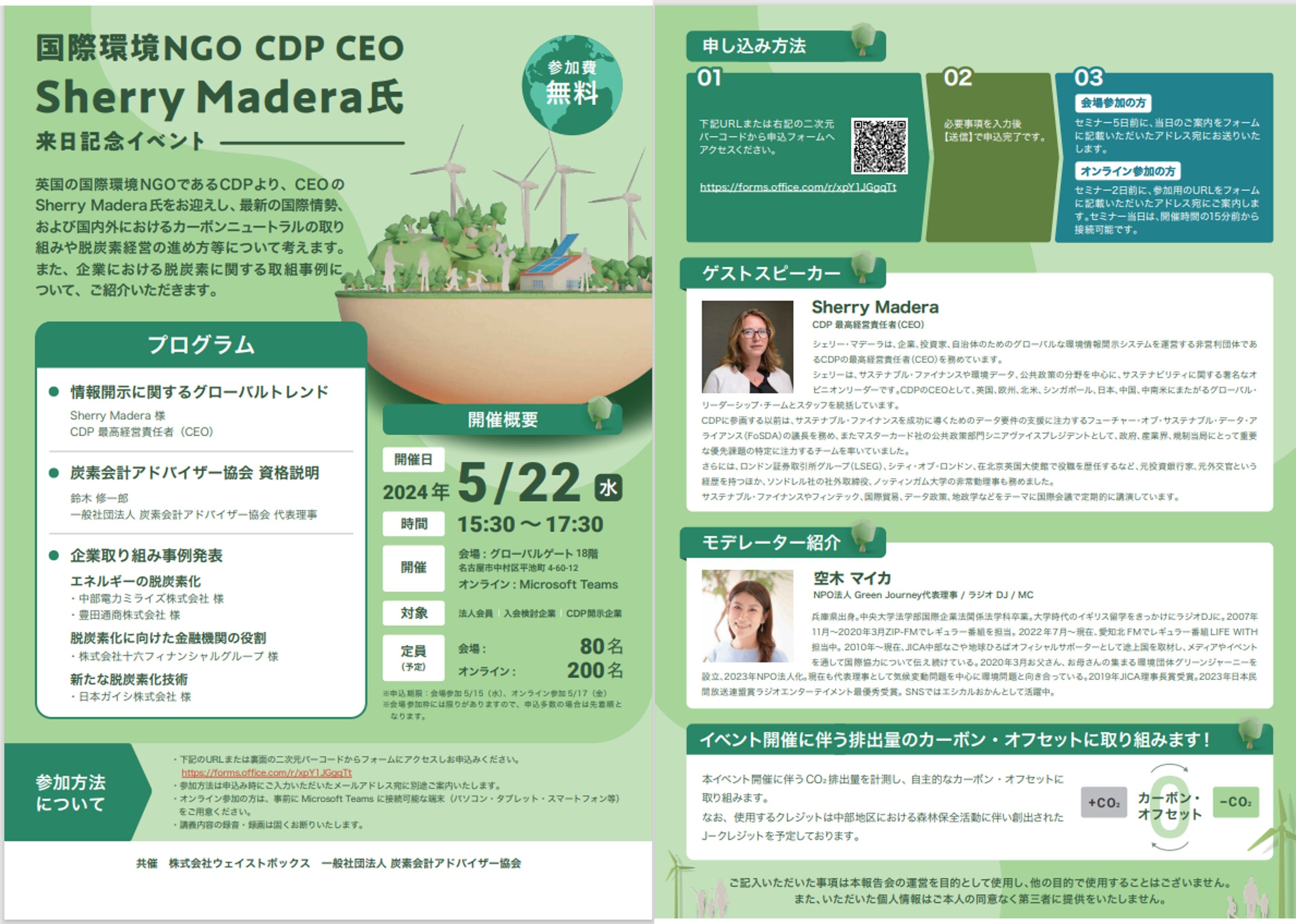 ◆ 共 催: 株式会社ウェイストボックス、一般社団法人炭素会計アドバイザー協会