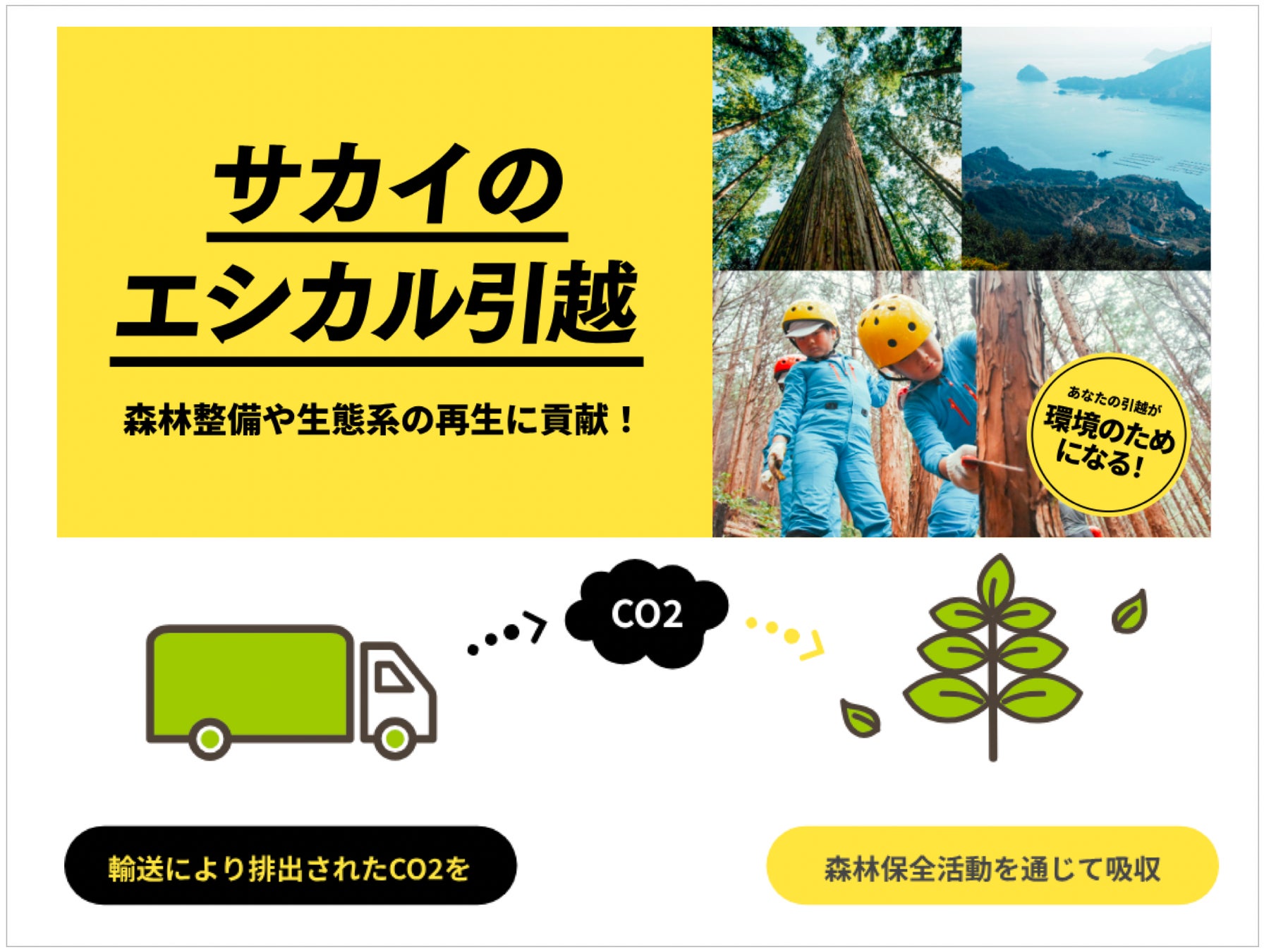 株式会社paramita(東京都新宿区:代表取締役 林篤志・大澤哲也 以下「paramita」)と株式会社サカイ引越センター(大阪府堺市:代表取締役社長 田島哲康 以下「サカイ引越センター」)は、環境保全や地球温暖化防止に関心の高いお客様の声に応えるため、CO2フリーで森づくりに貢献できる新しい引越プラン「エシカル引越」を共同開発しました。