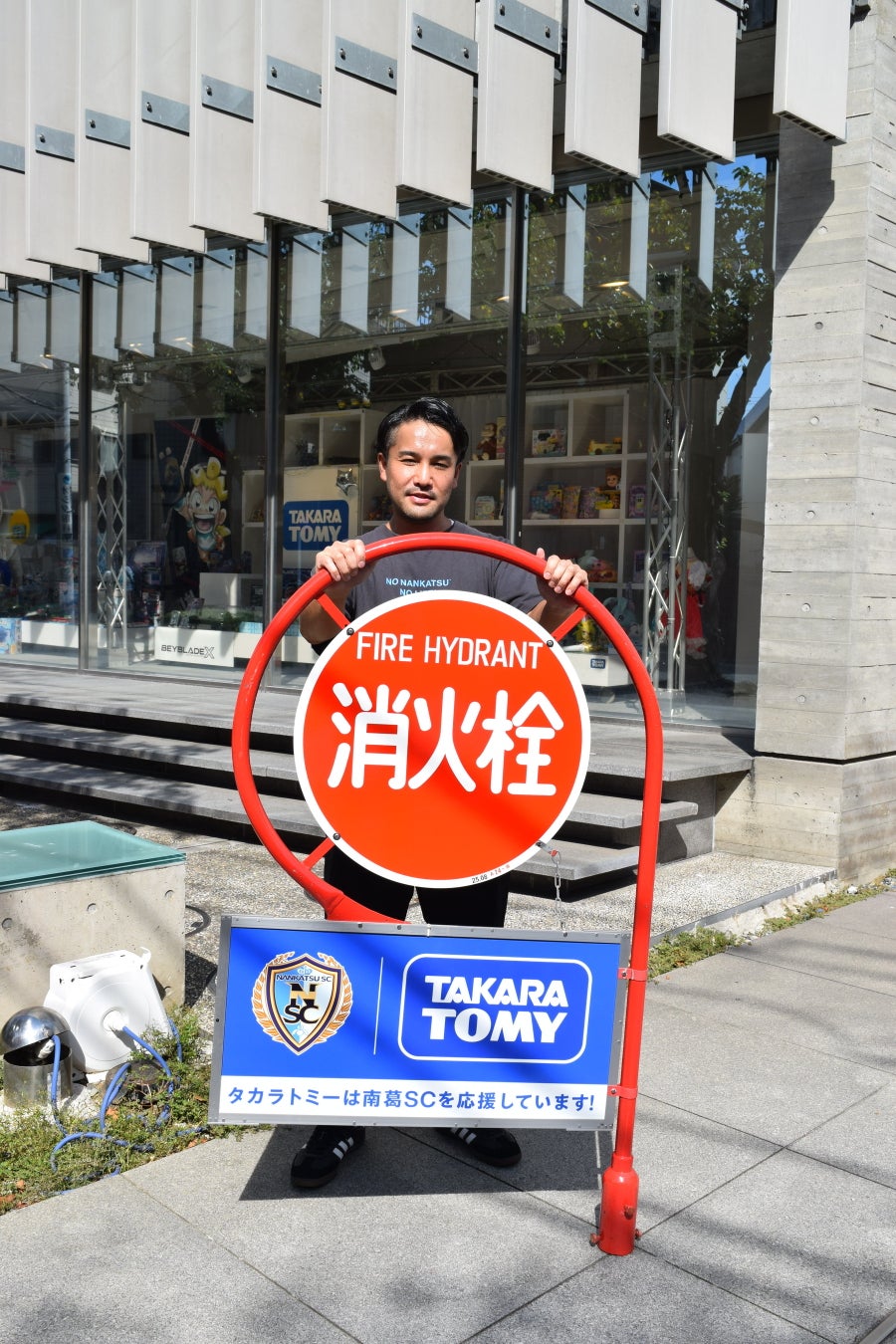 タカラトミーがサッカークラブ南葛SC応援広告を消火栓標識に設置、京成立石駅周辺に10カ所掲出し チームと地域防災を支援します!
