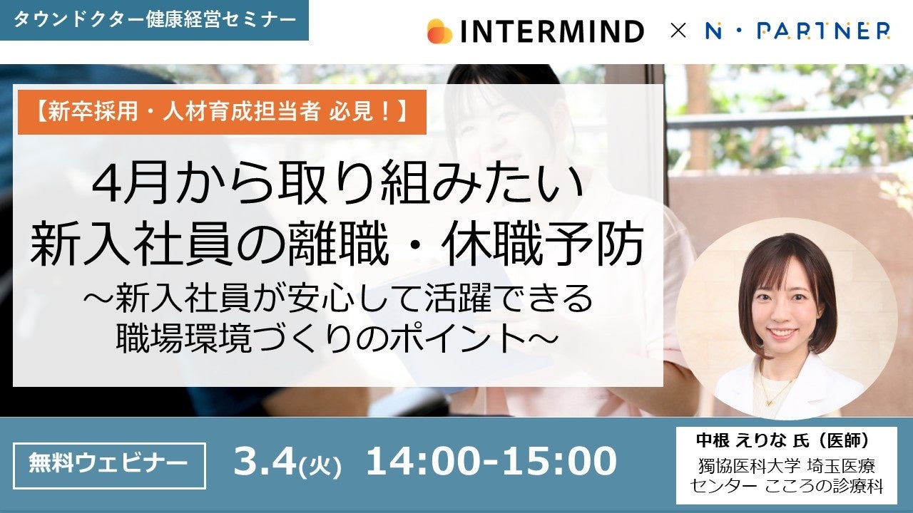タイトル:【健康経営セミナー@3/4】タウンドクター×INTERMIND 4月から取り組みたい新入社員の離職・休職予防