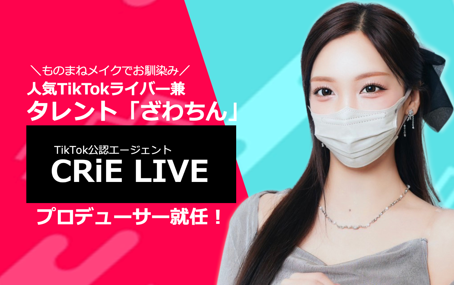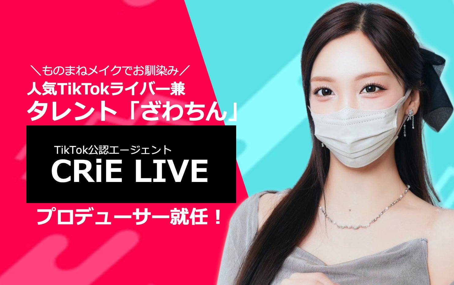 ざわちんは芸能人のものまねメイク”というメイクの新分野を確立。その完成度の高さから幅広い年齢層に人気のタレントです。また、自身もライバーとしてTikTok Liveで活動しておりその経験を活かしてCRiE LIVEのライバーのサポートや、事務所内セミナー・公式動画でのレクチャーにも出演予定です。配信では雑談の他、ものまねメイクのリクエストにも応えるなど、ざわちんのメイクテクが満載となっています。