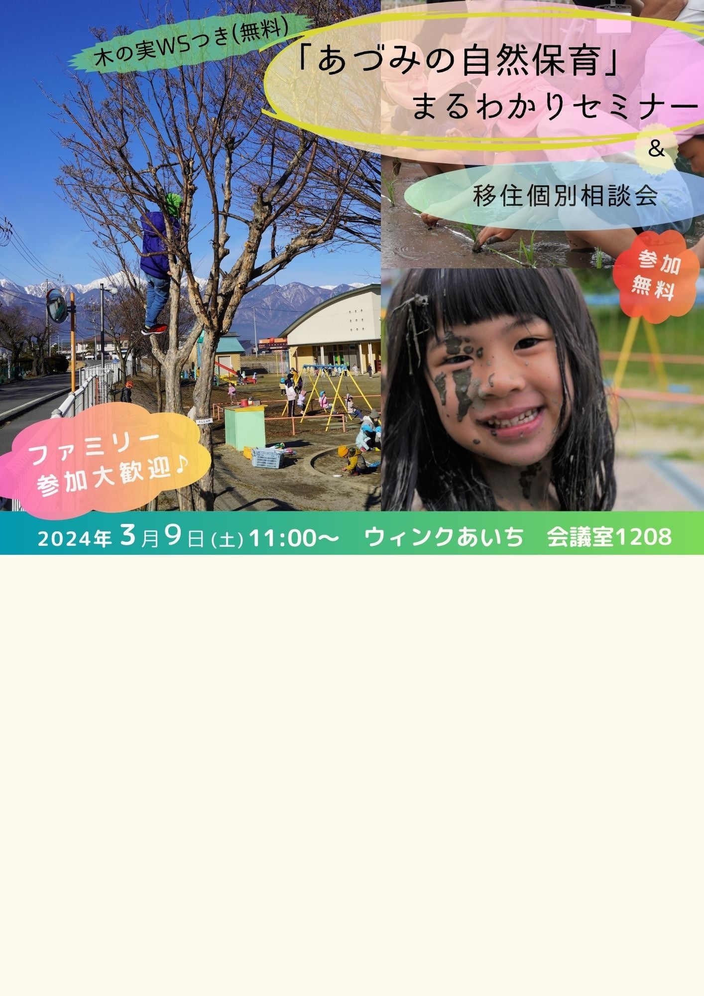 「あづみの自然保育」まるわかりセミナー&移住個別相談会 3/9名古屋市「ウィンクあいち」で開催します
