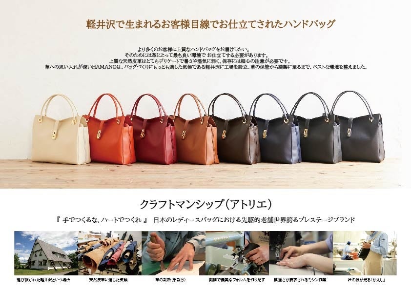 事業内容:ブランド・HAMANOのハンドバッグ、革製品の企画・製造・卸・販売https://hamanobag.com/