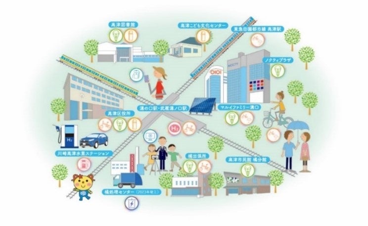 高津区役所・マルイファミリー溝口・ノクティプラザをはじめとして、様々な民間・公共の施設で再生可能エネルギー100%の電力を使用。