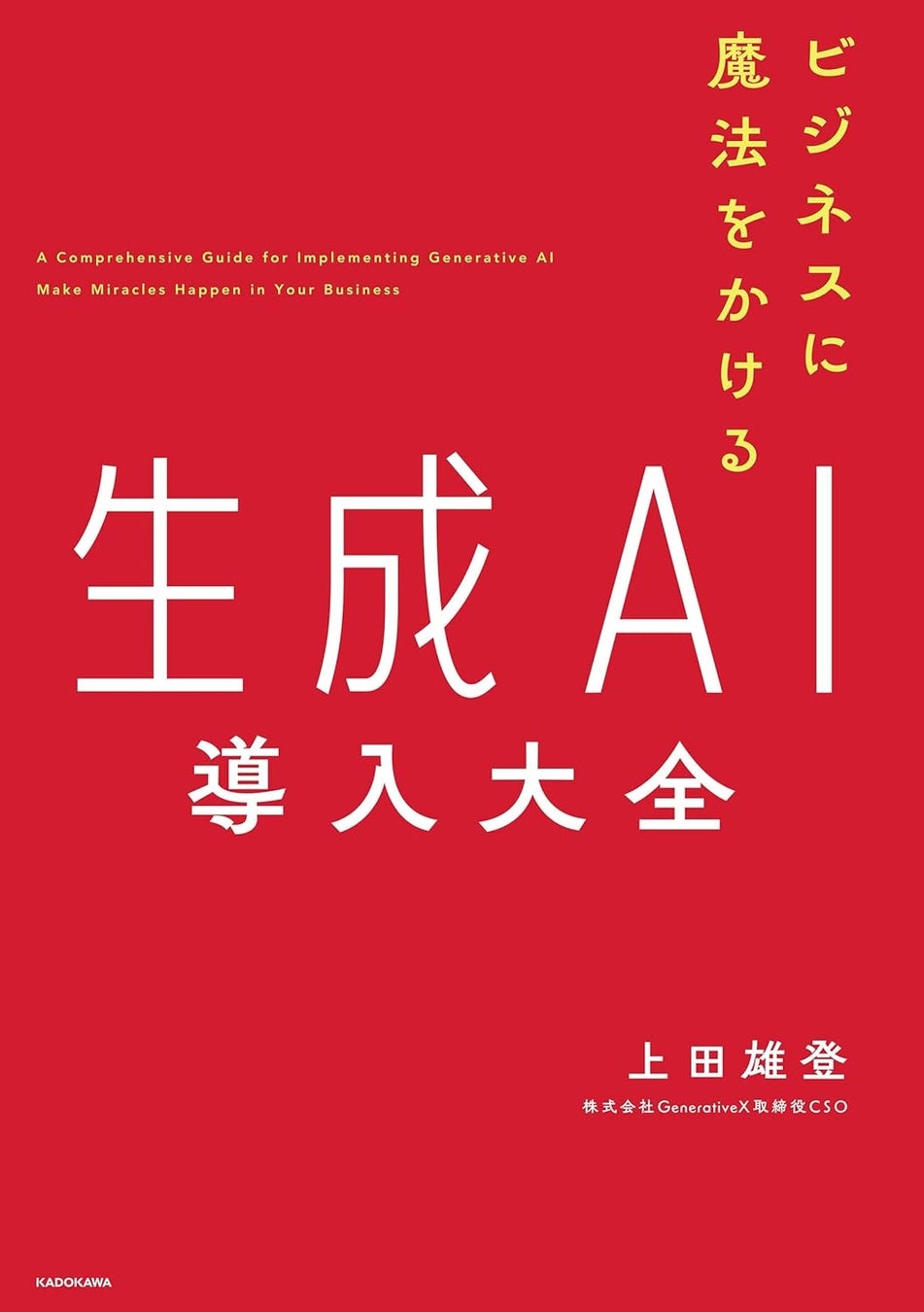 生成AIのコンサルティング・アプリ開発を行うGenerative X 取締役CAO上田雄登が、『ビジネスに魔法をかける 生成AI導入大全』 (KADOKAWA社)を、2024年9月20日(金)に出版