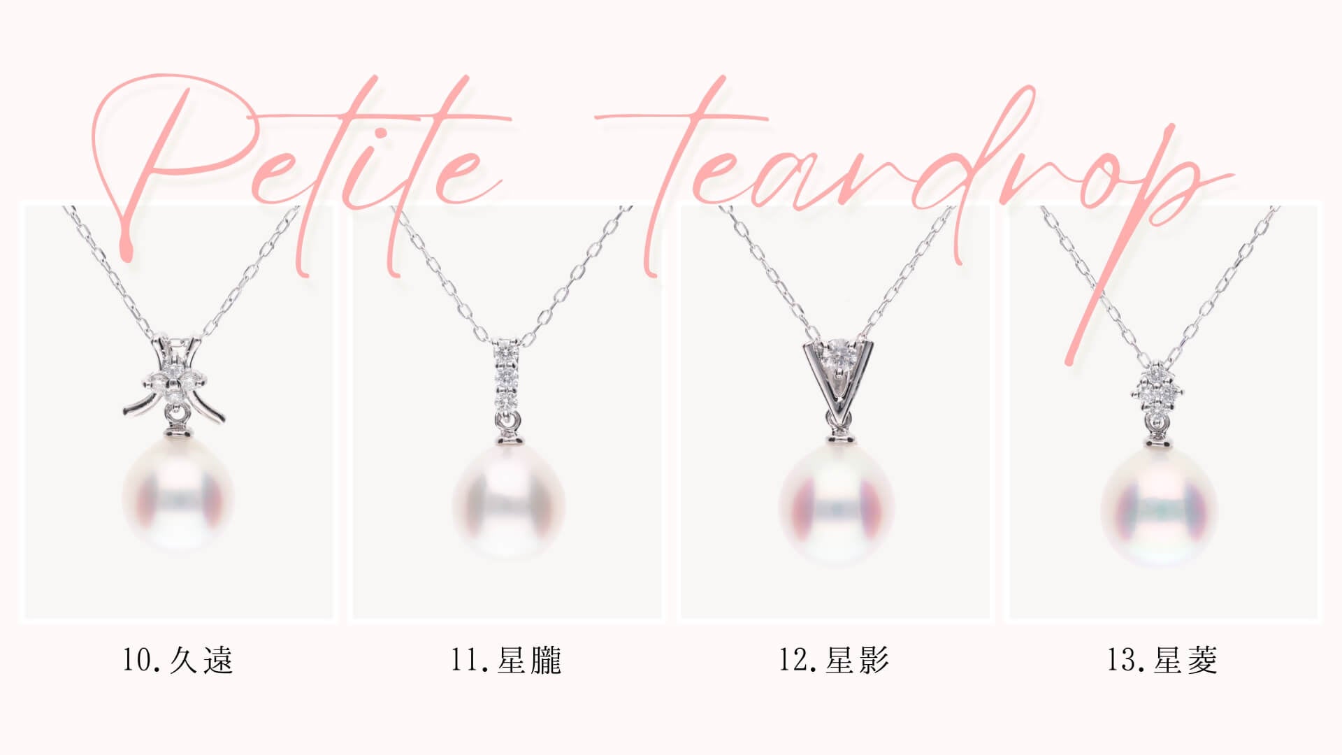 ティアドロップの形、光沢の美しさ、リーズナブルな価格の三拍子が揃った、最もバランスの良いシリーズです。優雅で洗練された涙のフォルムが特徴です。