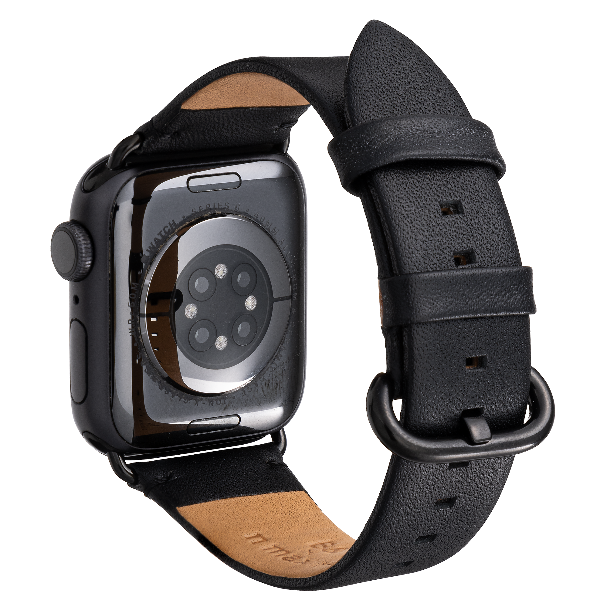 n max nのアイコニックな「シンプルかつ美しい」デザインを継承しつつ、細部のパーツと革をアップデート。Haas社レザーが持つ質感がApple Watch本体に自然に溶け込みます。