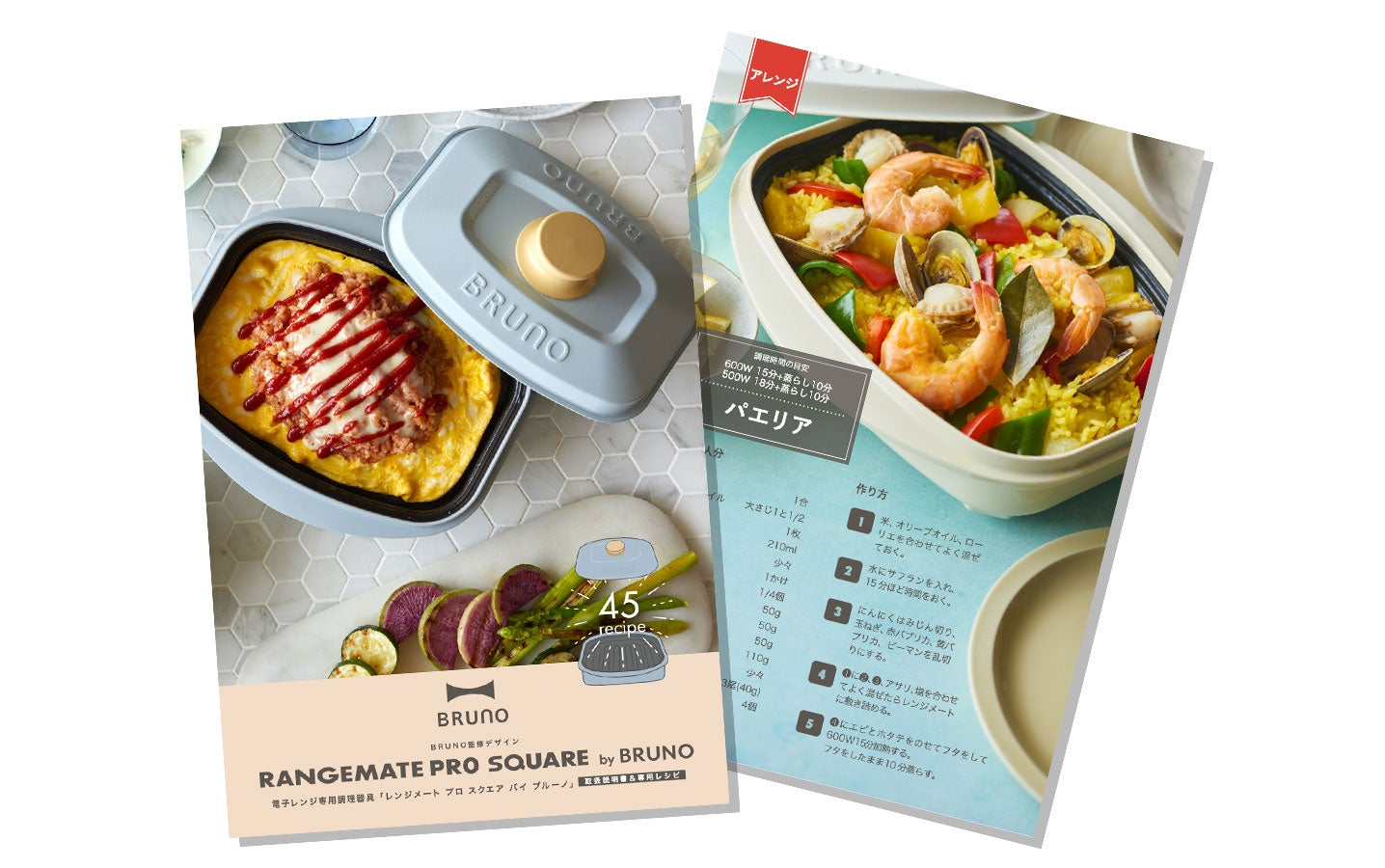 付属のレシピブックには、BRUNOで人気のレシピをレンジメート仕様にアレンジしたメニューも収録しており、より多彩な料理を手軽に楽しめます。