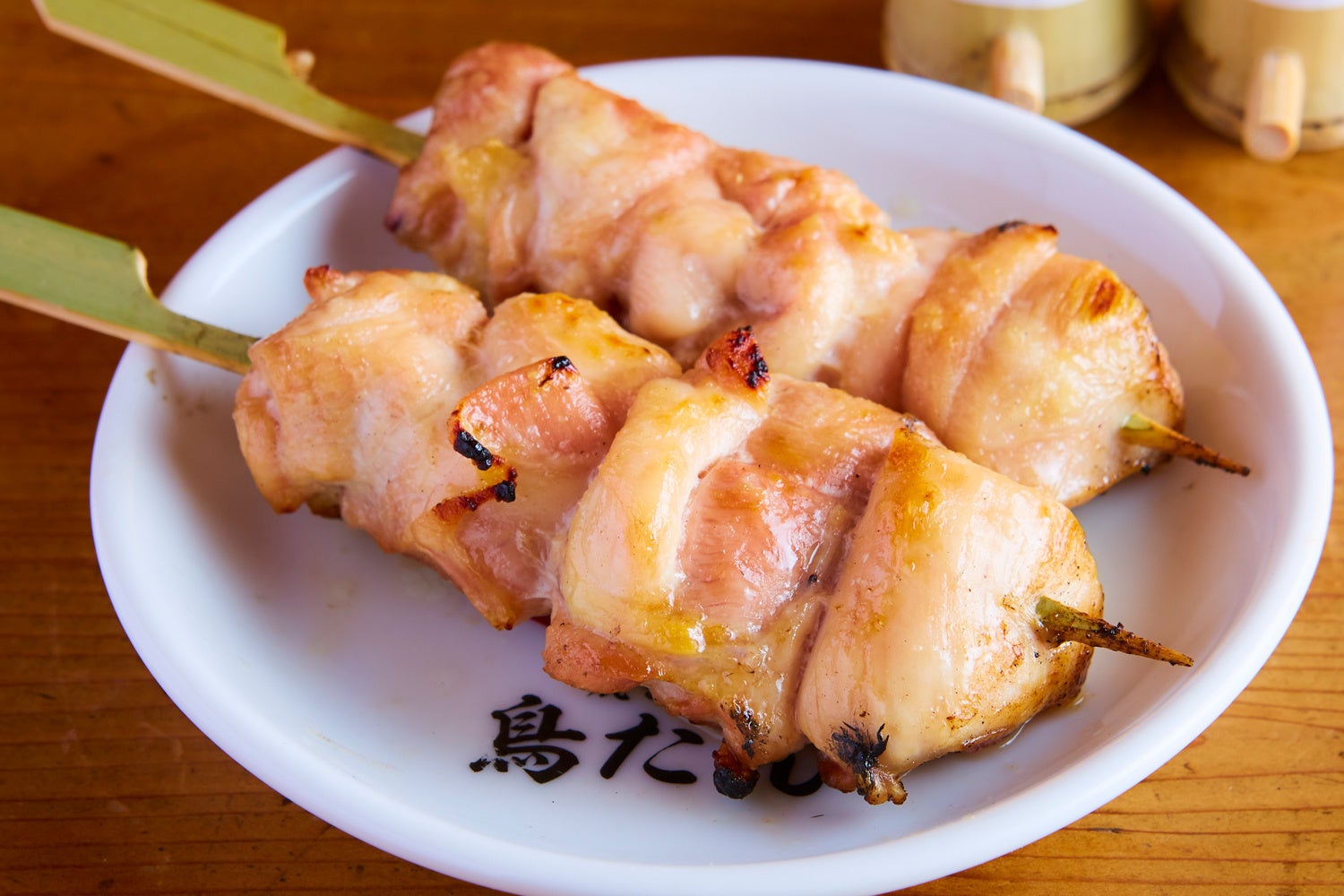 新鮮な国産鶏もも肉の焼鳥。大きさとジューシーさで食べ応え十分。