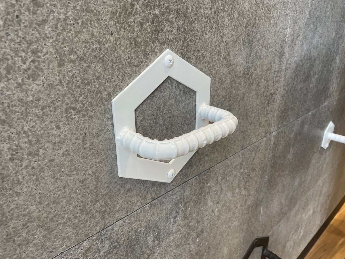 な形状なので、運動器具としての使用法だけではなく、普通のフックではかけられないよ