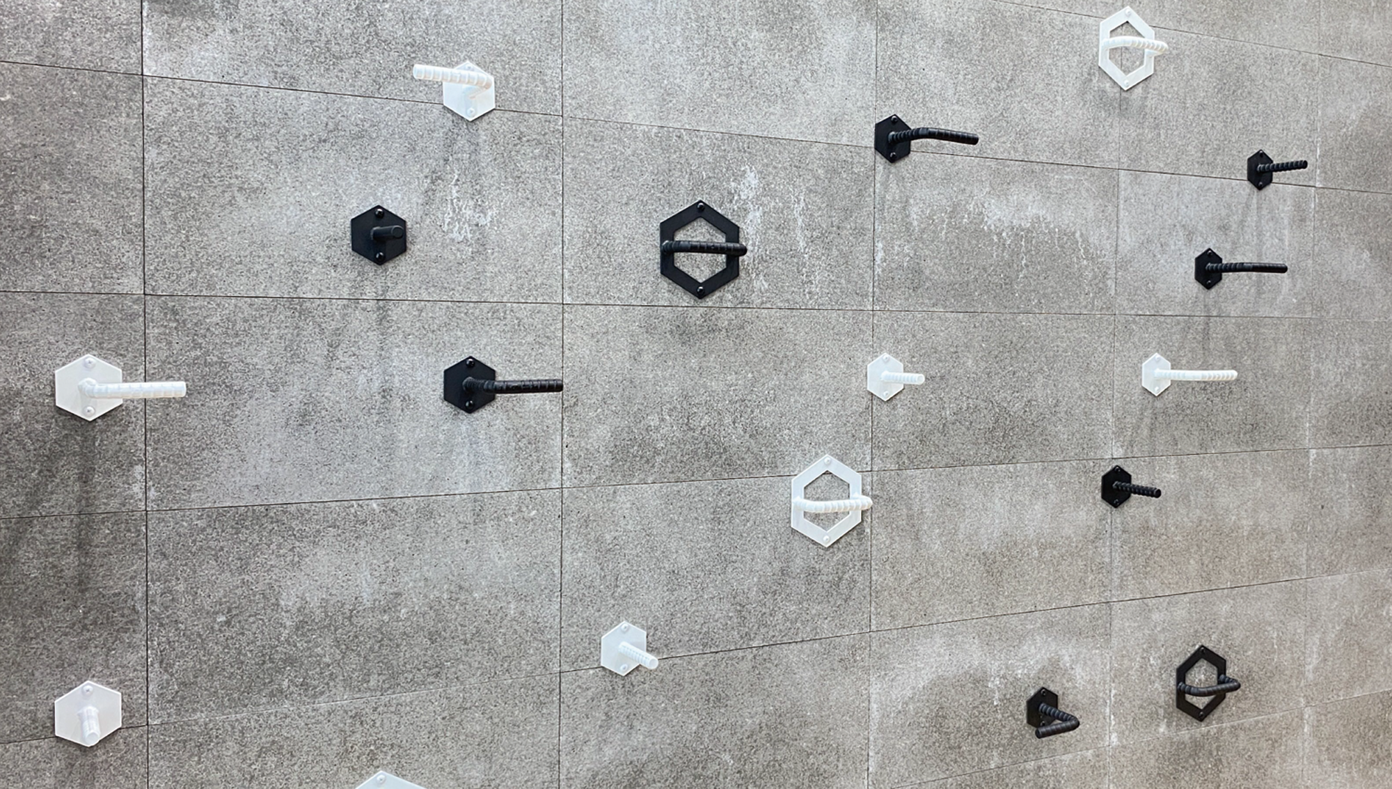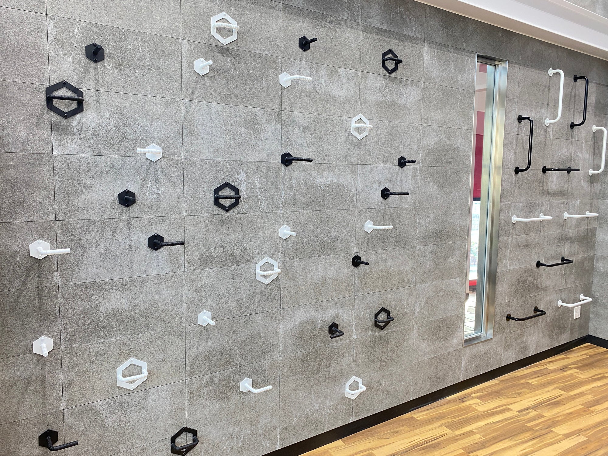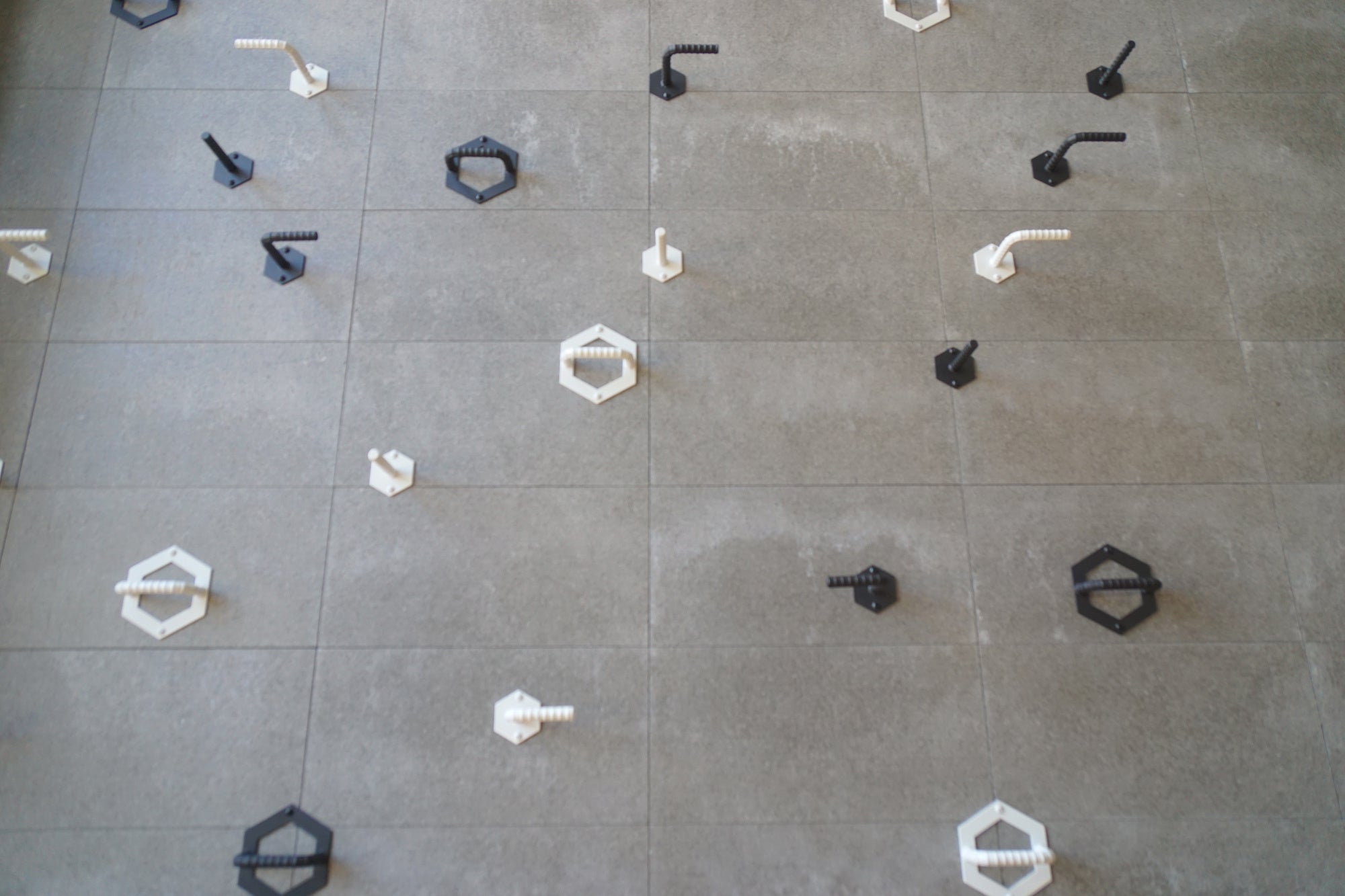 アホワイトの2 種類をご用意。ランダムに並べてボルダリング、グリップタイプを2 つ並