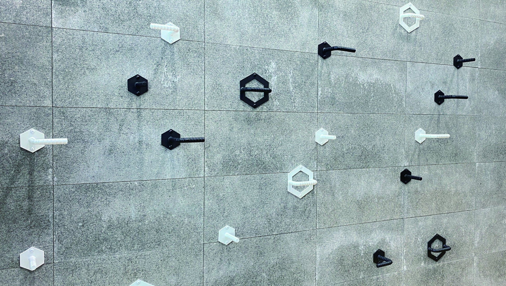 鉄筋コンクリートの鉄筋として使用されることの多い異形丸鋼を加工し、壁付けのアスレチック器具として商品化しました。