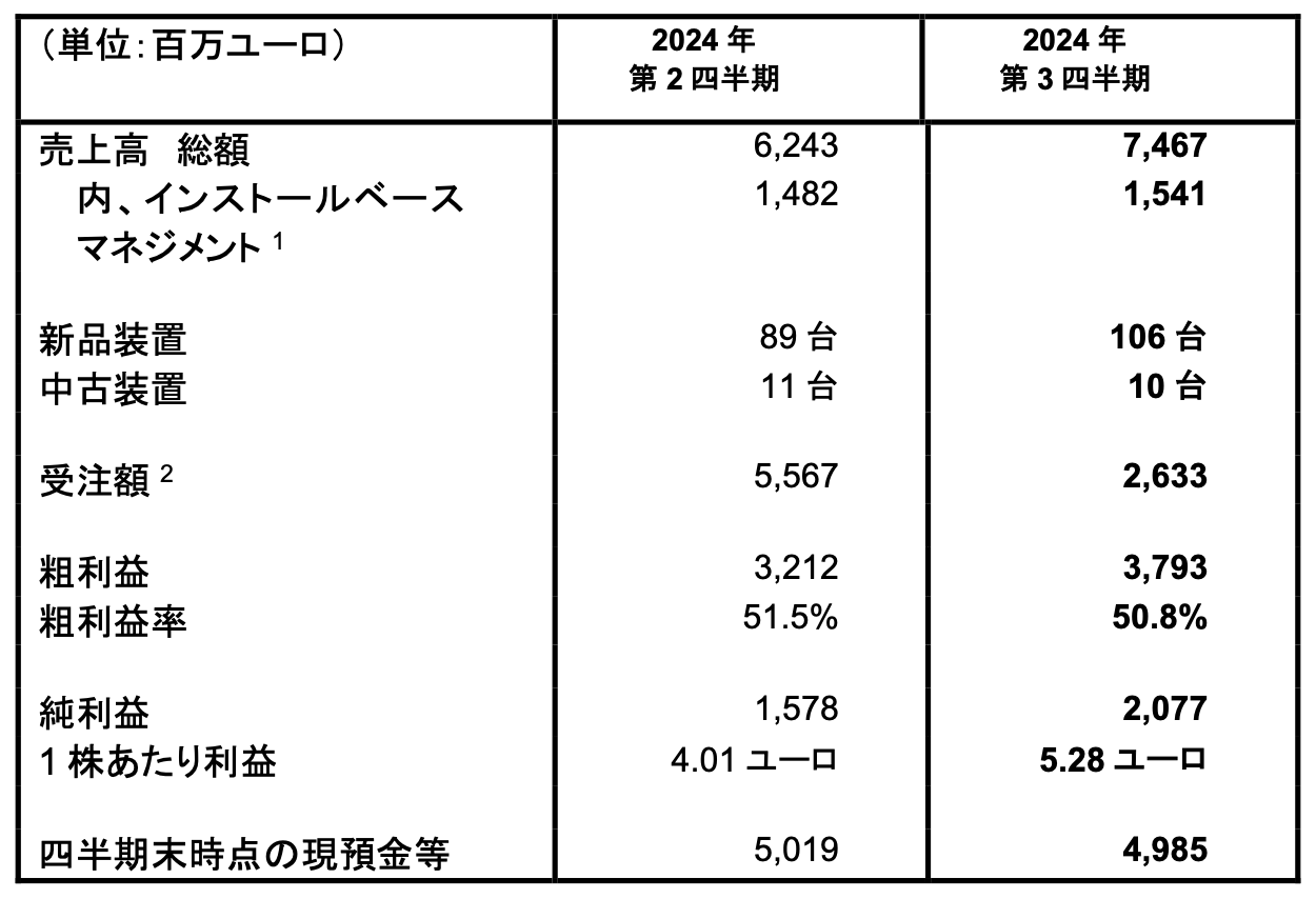 ・2024 年第 3 四半期の受注額は 26 億ユーロ²、これには EUV 受注額 14 億ユーロが含まれています。