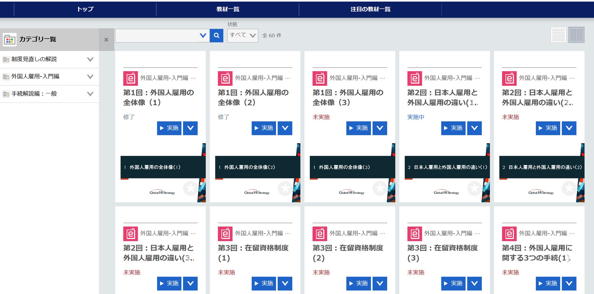 ・外国人雇用・入門編:新入社員の方にも適した内容で、外国人雇用の基本的な全体像を学習できます。(★)