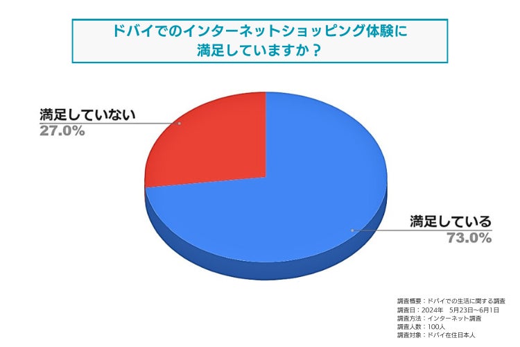 弊社が運営する『ドバイ総合研究所』は、ドバイ在住の日本人を対象に「ドバイでのインターネットショッピング体験に対する満足度」についてアンケート調査を実施しました。結果は以下の通りです。