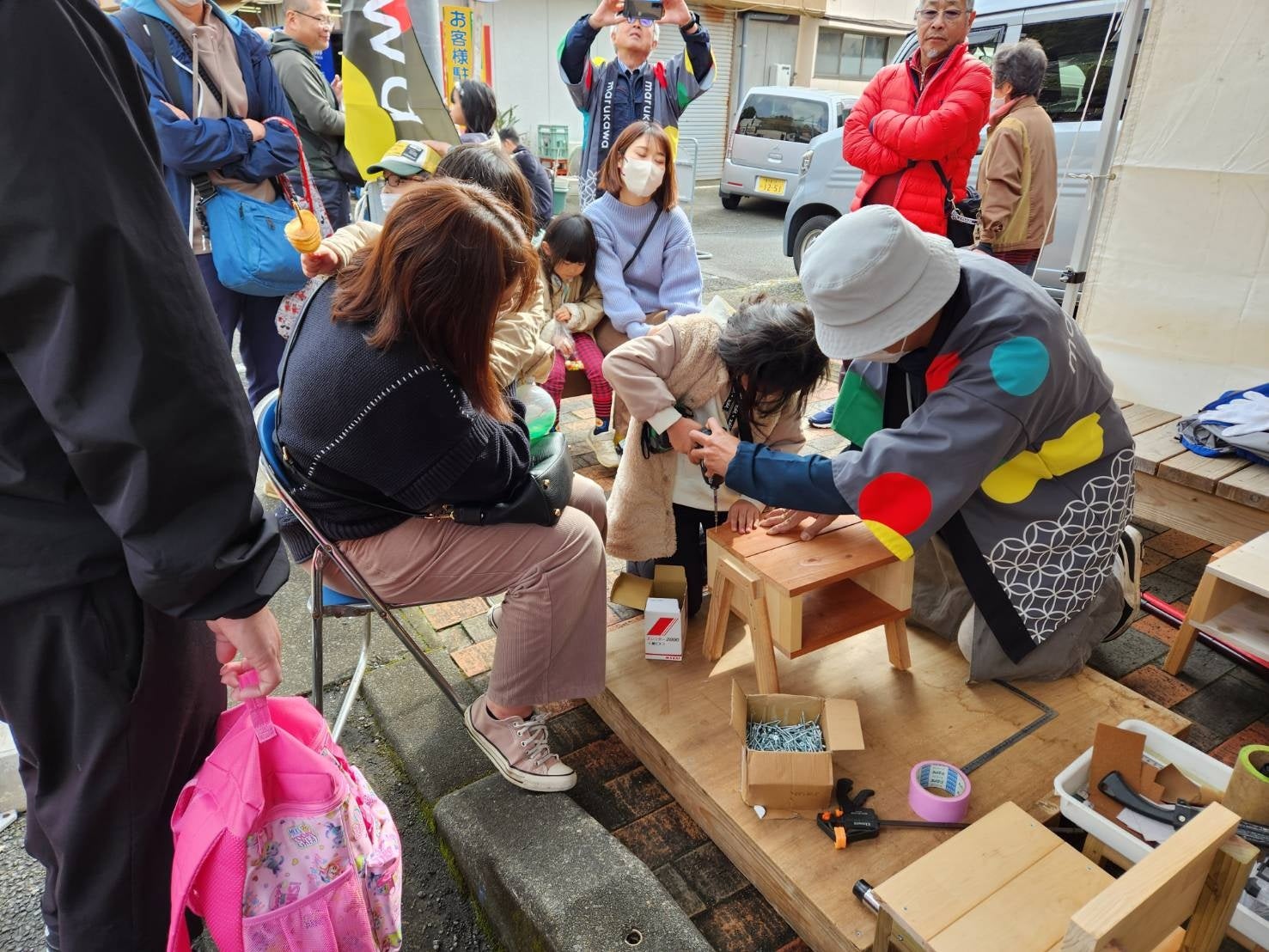 毎年marukawaでも出店しており「親子木工教室」を開催しています。
