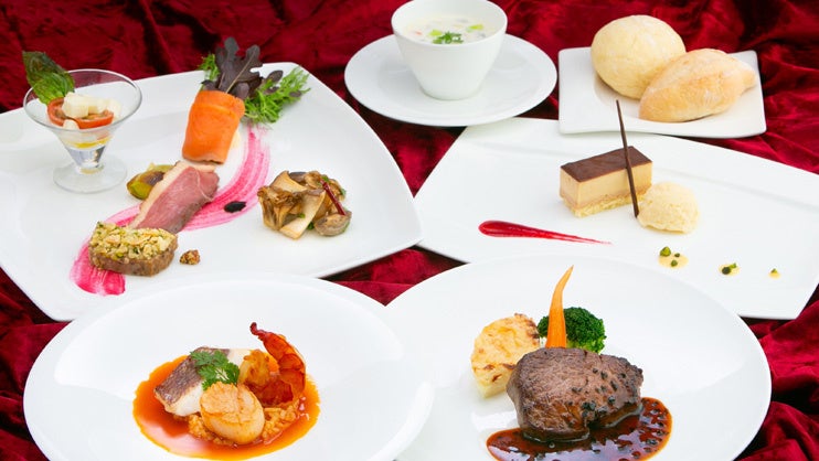 歌劇作曲家 ロッシーニがこよなく愛した 牛フィレ・フォアグラ・トリュフのアンサンブル「ロッシーニ」がメインの王道フレンチフルコースや見た目も華やかな「和」のクリスマス。