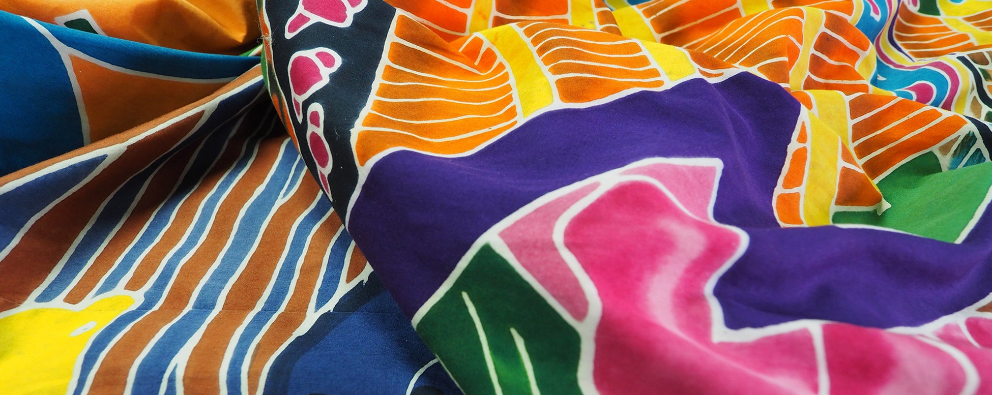 香川県の伝統工芸品である「讃岐のり染」という手法を用いて一点一点手作業にて仕上げられる、想いの込もった作品は実に鮮やかで魅力的であるとともに、吉野屋 様そして大野 様のこだわり・信念とされている味わい深さ、温もりを強く感じます。