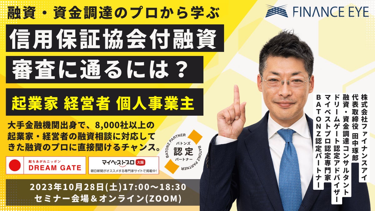 10/28開催『信用保証協会付け融資の審査に通る?』起業家・経営者・個人事業主必見の資金調達セミナー