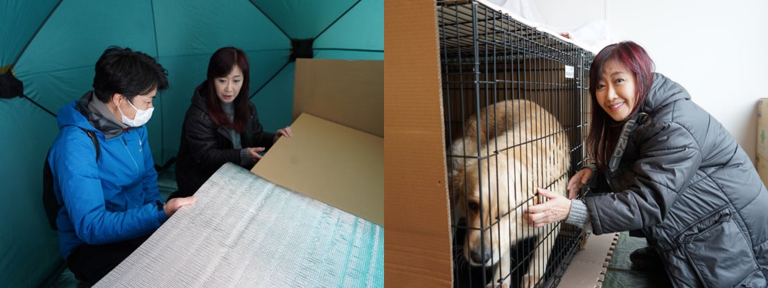 アンバサダーの伍代夏子氏が石川県珠洲市のペット同室避難所を訪問