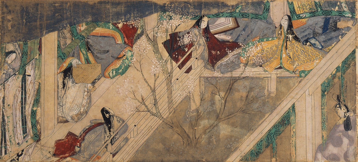 玉鬘の娘・大君と中の君の姉妹は幼い時から争ってきた桜の所有権を賭けて碁を打ち、女房達は楽し気に囃し立てる。蔵人少将は夕暮れの霞の中に浮かぶ大君の姿を垣間見て、ますます恋心を募らせる。