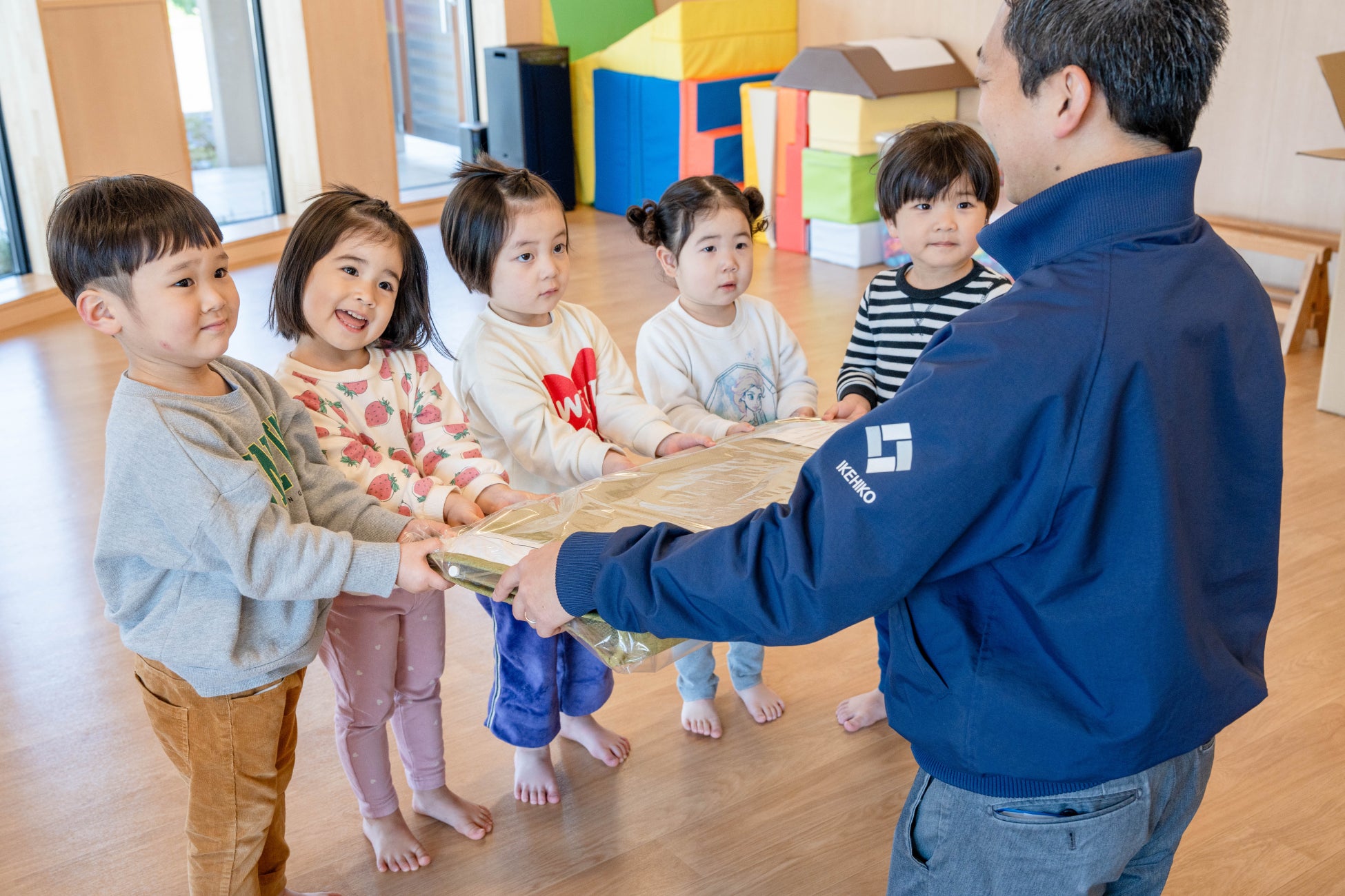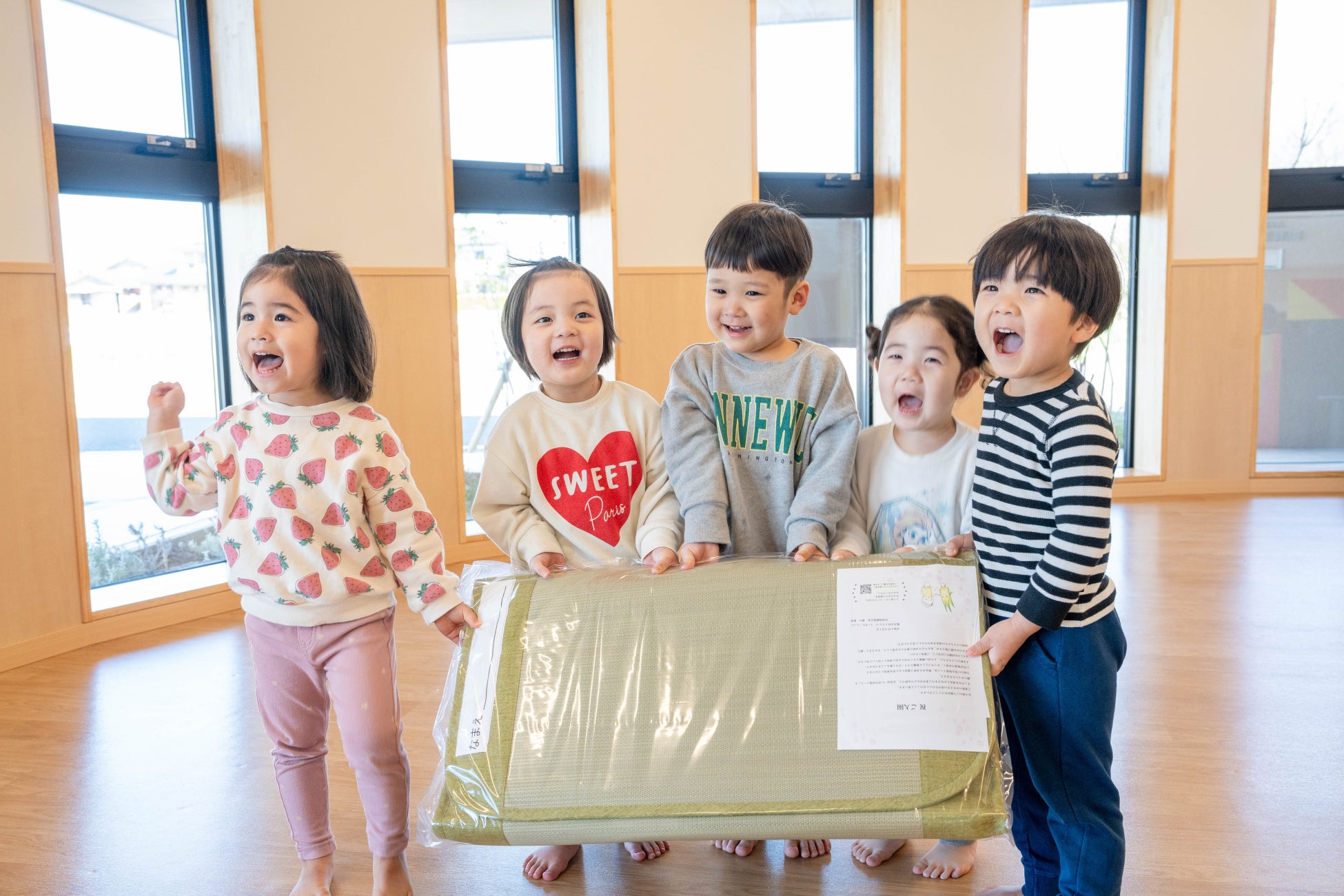 2024年4月1日、株式会社イケヒコ・コーポレーションは福岡県大木町の保育施設に通う3歳児約100名に「い草のお昼寝布団」を寄贈いたしました。自然素材のさわやかな肌ざわりと香りのい草お昼寝マットで、地元大木町の子供たちがよりよく眠りすくすくと健やかに育ってほしい、という願いが込められています。