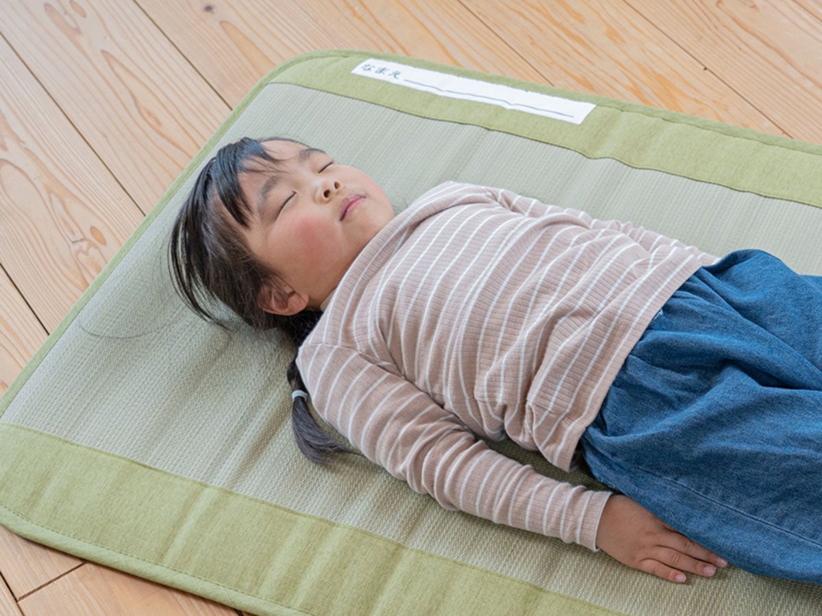 い草は高い吸湿力で眠っている間もさらりとした肌触りで、ぐっすりと眠ることができます。また、い草は優れた消臭力と汚れにくさを持っており、お手入れは軽く乾拭きして日陰干しをするだけで大丈夫。子育てを楽にする嬉しい機能も持ち合わせています。
