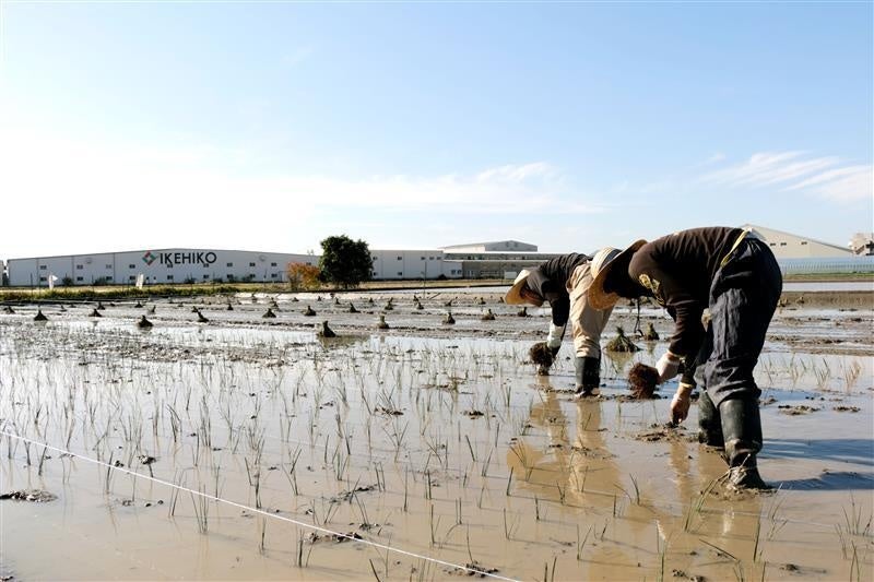 これまでに、フローリングの上に敷いて使えるい草のカーペットや持ち運びができる軽量の畳(置き畳)など、畳・い草製品をメインとしたインテリア商品の開発と販売を行ってきました。商品の開発・販売だけでなく、約10年ほど前からい草の自社栽培にも取り組んでいます。社員自らが田んぼでい草を育て、農業を体験し、い草への愛情と地場産業への理解を深めています。