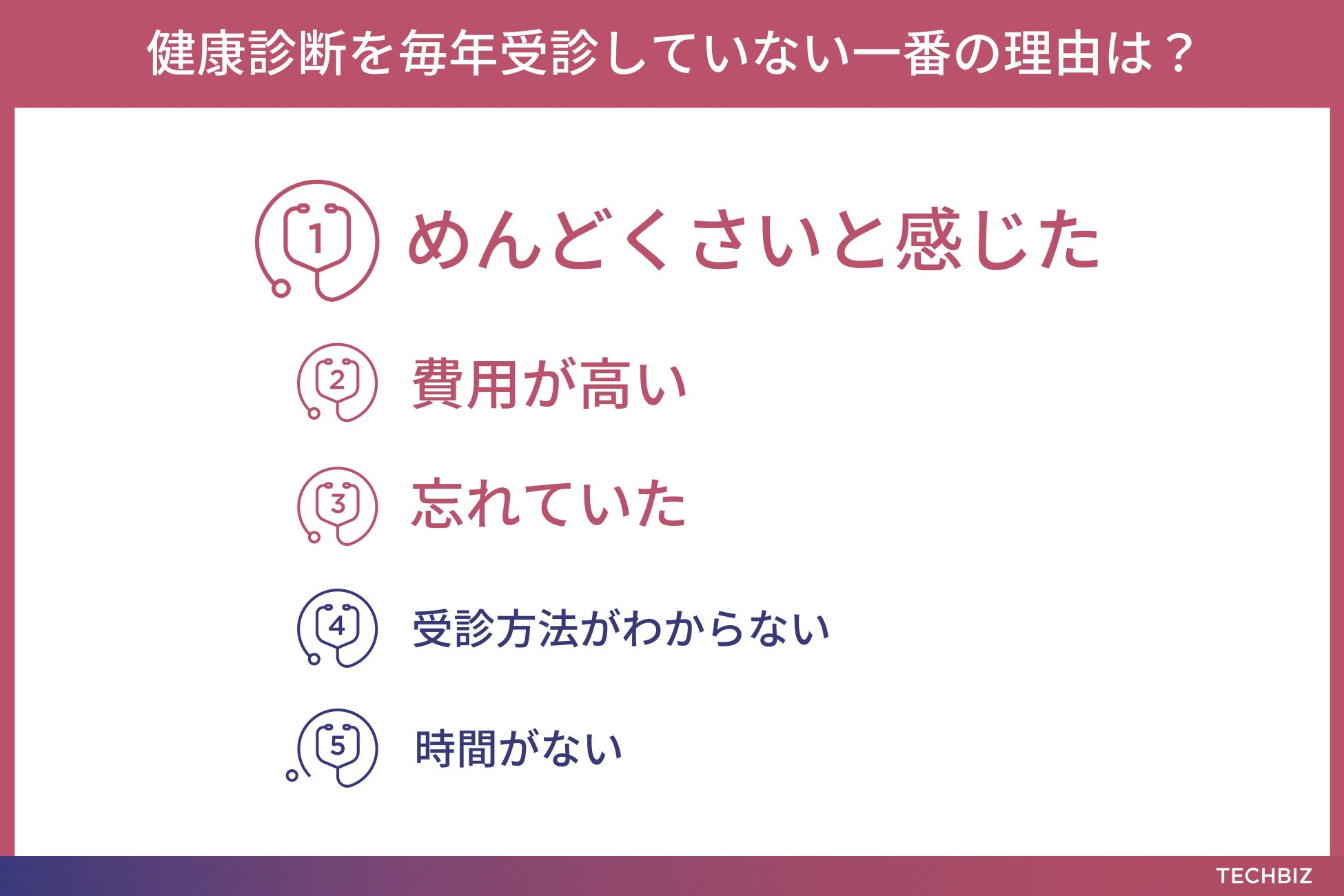 ▶️健康診断を毎年受診していない一番の理由は「めんどくさいと感じた」