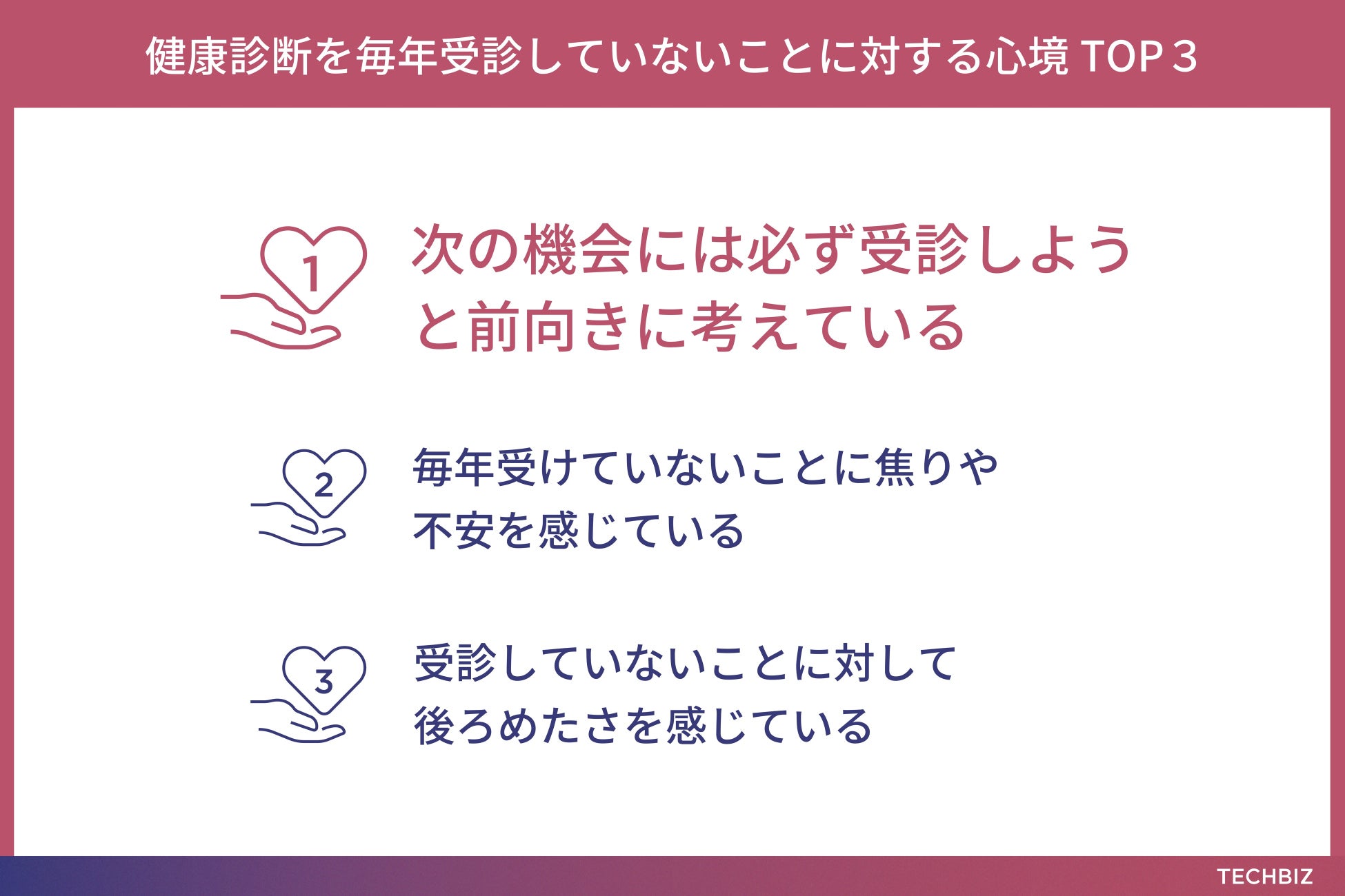 ▶️健康診断を毎年受診していないことへの心境TOP3に「不安」「後ろめたさ」