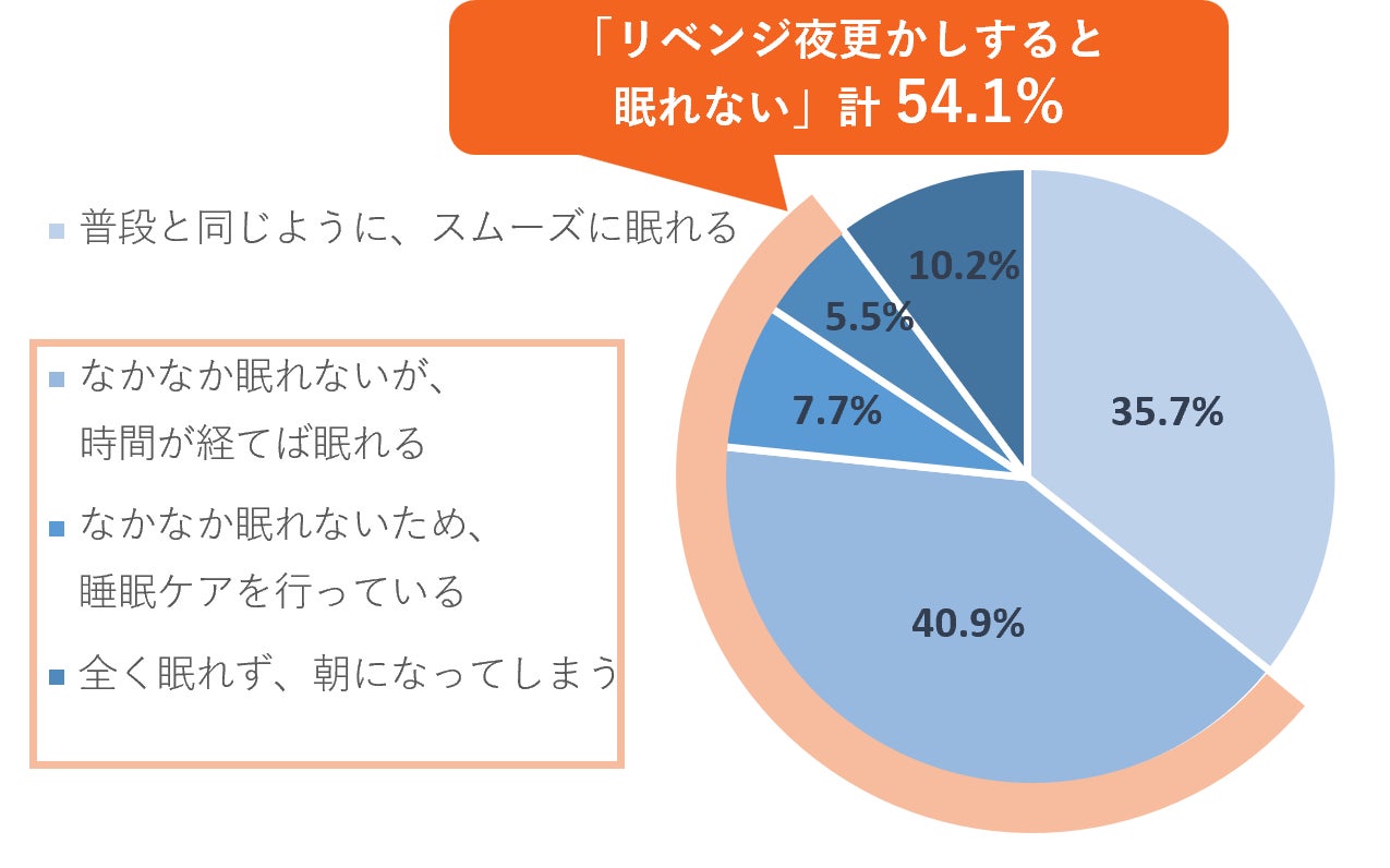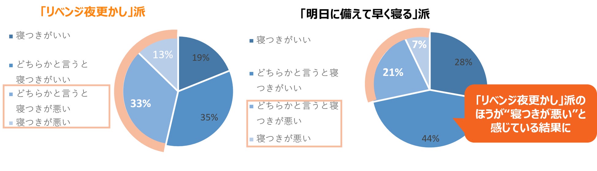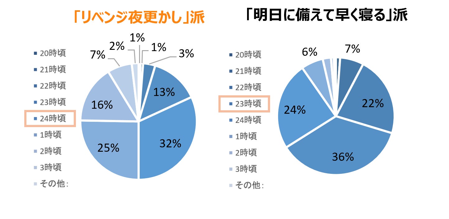 4人に1人が「リベンジ夜更かし」派。「明日に備えて早く寝る派」と比べ、寝つきに課題も。