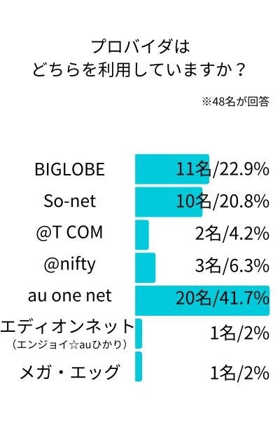・最も多く利用されているプロバイダはau one netで、約40%だった。